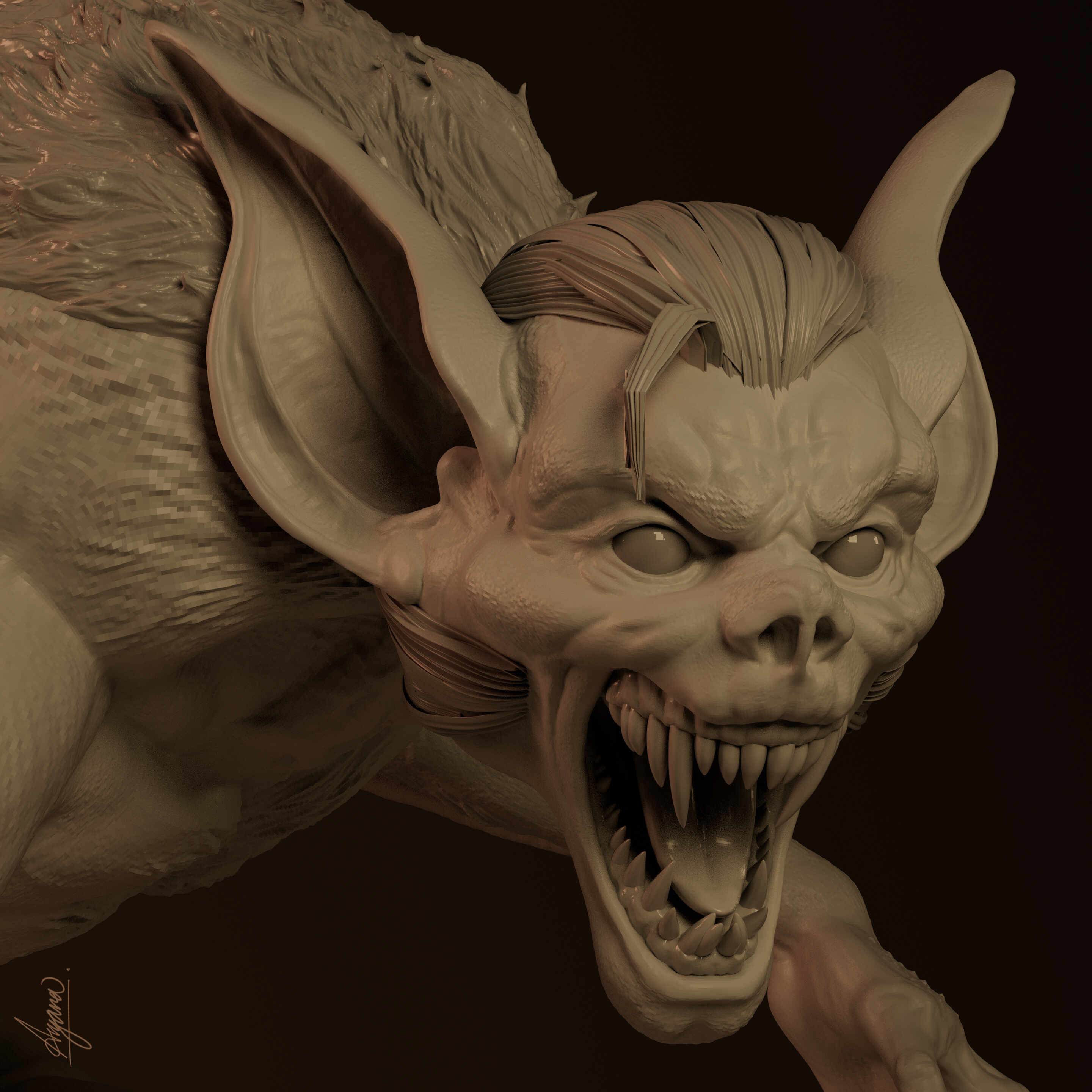 Wanted to do some hybrid creature stuff and got the idea of Man Bat from DC. Then drew concepts and started to sculpt. And did a simple render. Hope you guys like it!
