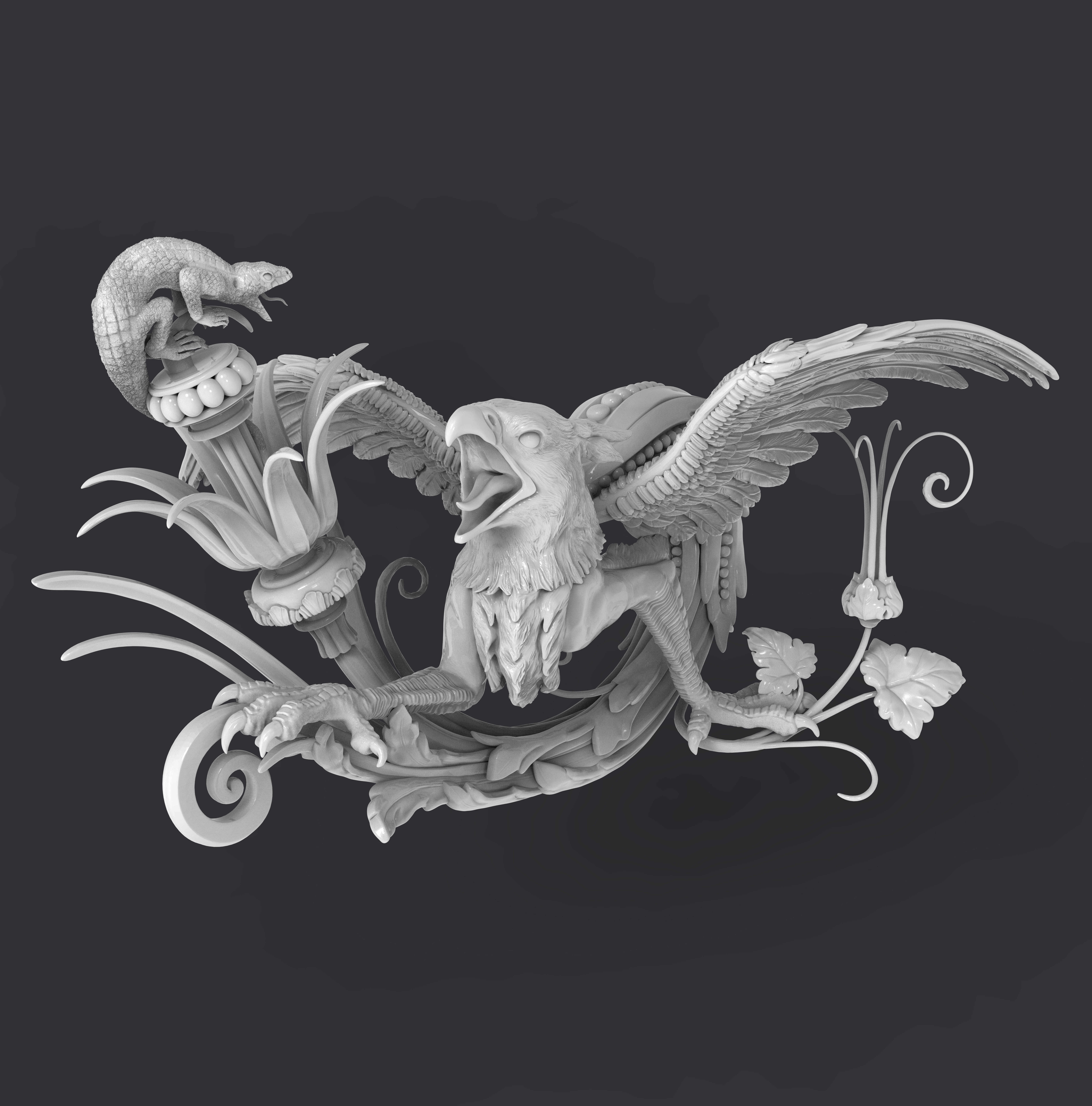 Marine monster and Griffin. Modeling from reference.