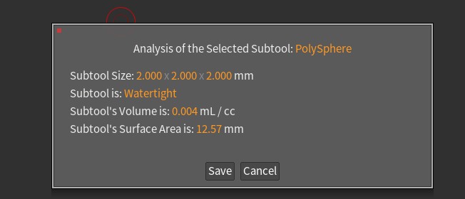 [IButton,"Analyze SubTool","Get Area and Volume of selected SubTool",