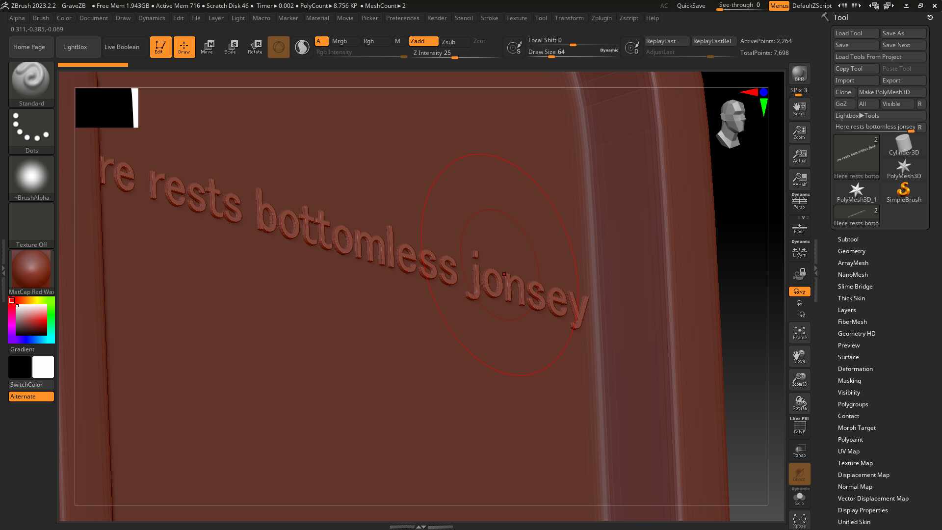 I have an issue i dont remember the solution for. Basically i want to merge 3d text onto a mesh and i have tried to use dynamesh but the text is not high res when merged.