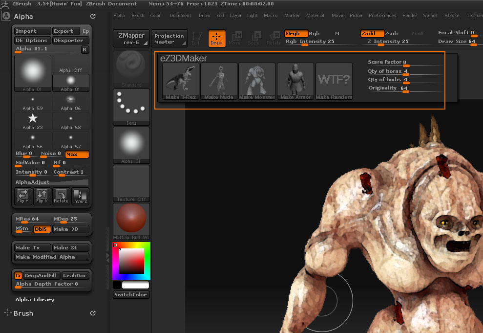 Context sensitive submenus mean you can select all the really cool original details that make your model a sure one-of-a-kind (See image).