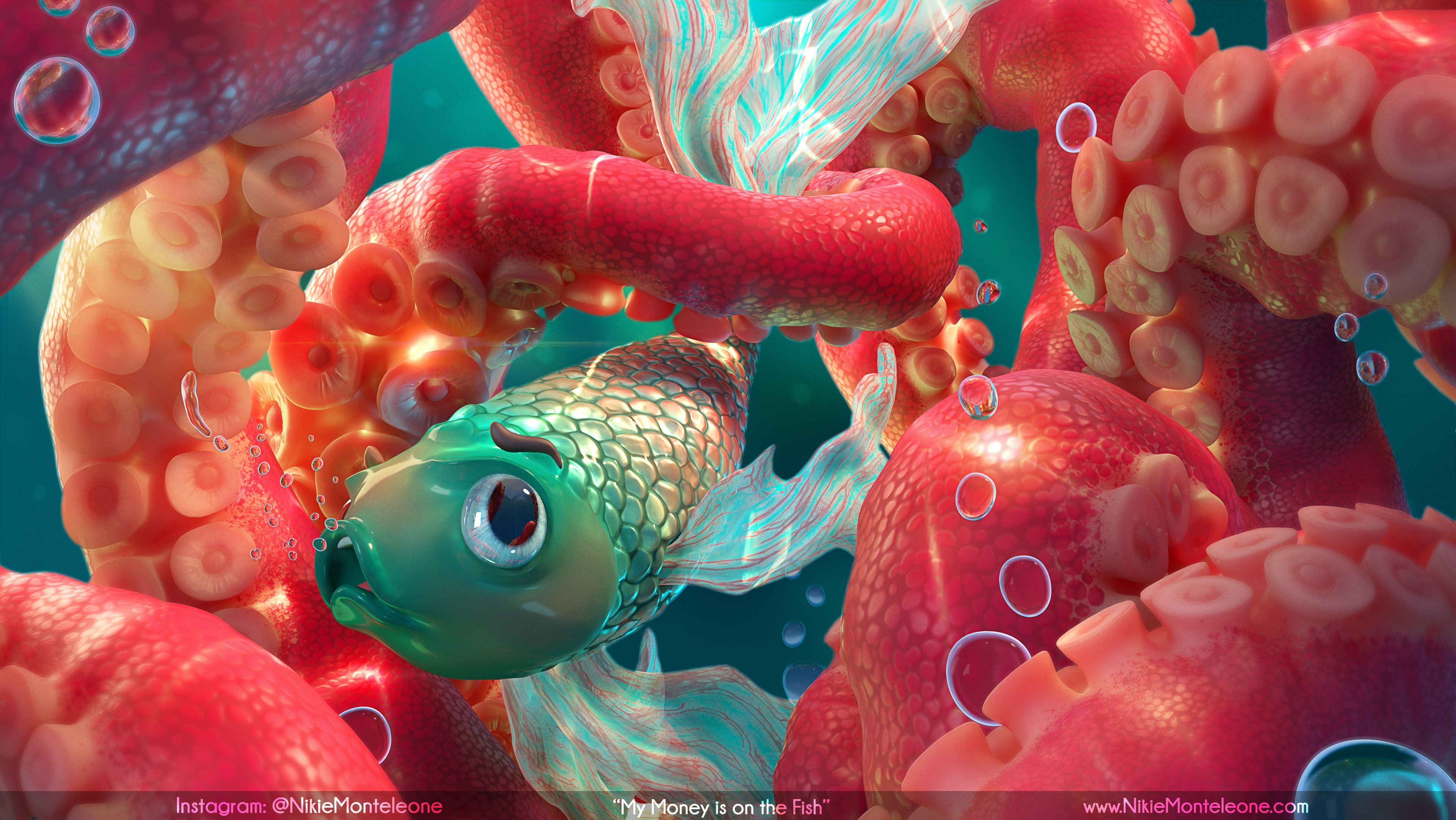 My first post! Finished this up not too long ago, “My Money is on the Fish” was a super fun personal project to continue my work forward a prey vs predator theme. Started in ZBrush, UV’d in Maya, brought into Substance Painter for surfacing and finished up with Redshift in Maya. This was also my first time using Redshift with my RTX and man are they a perfect match!