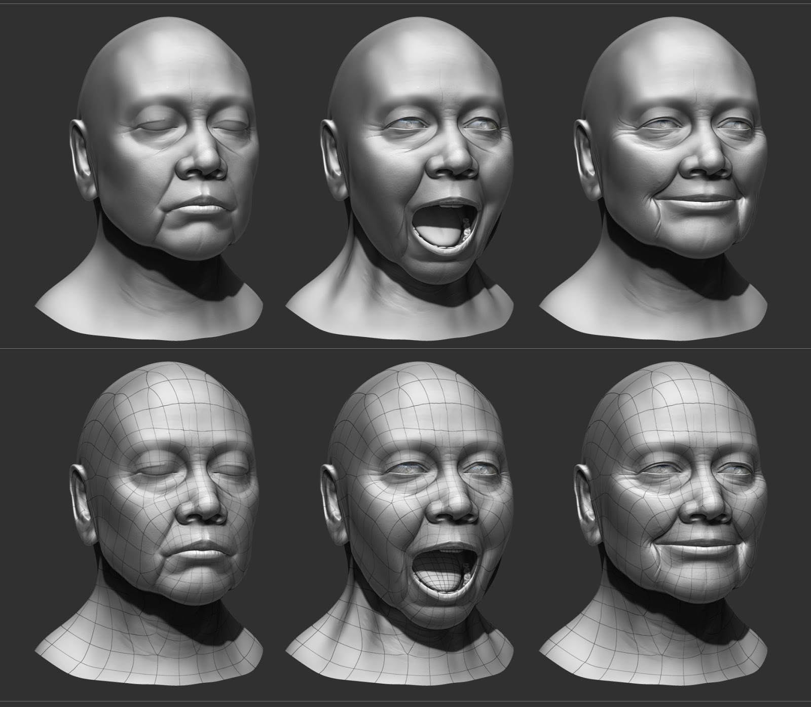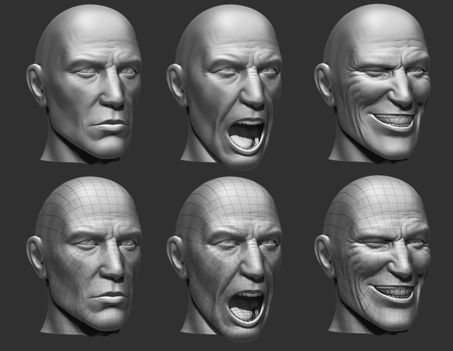 Here is another head sculpt I enjoyed making. Let me know what you all think. The fist couple of images were rendered in marmoset the wire frame in zbrush.