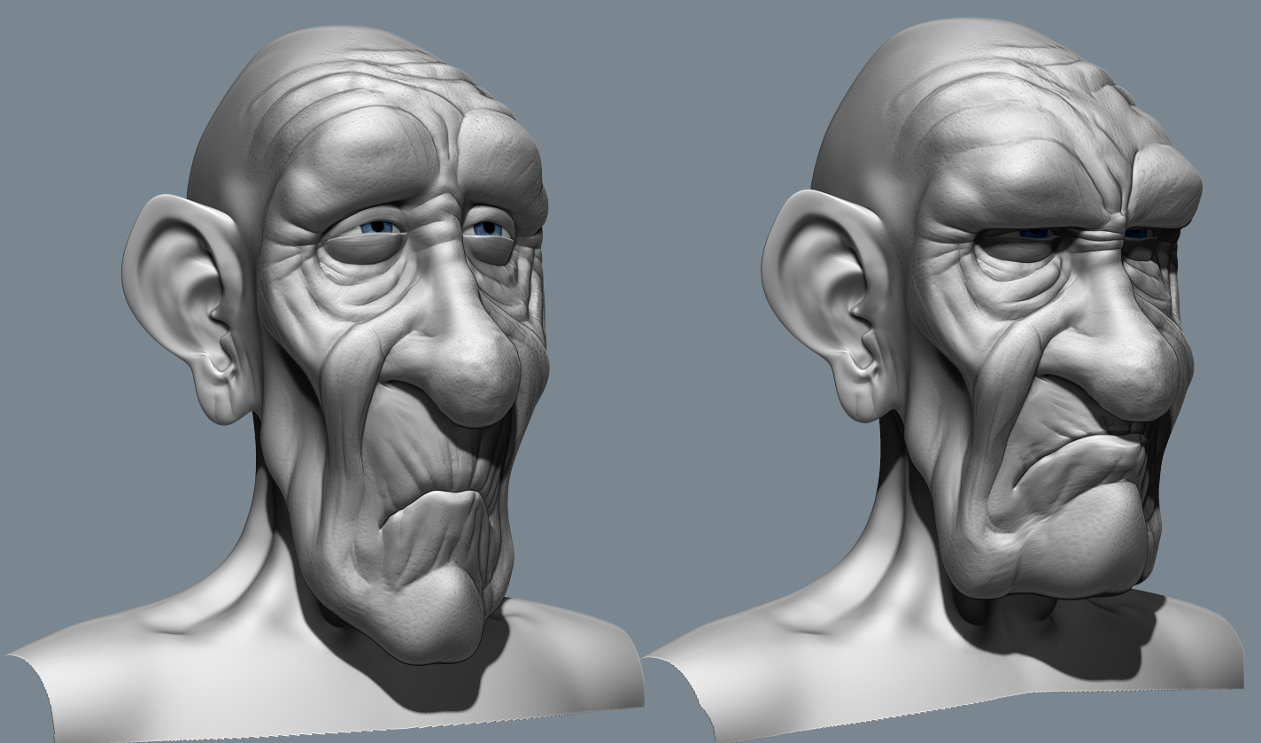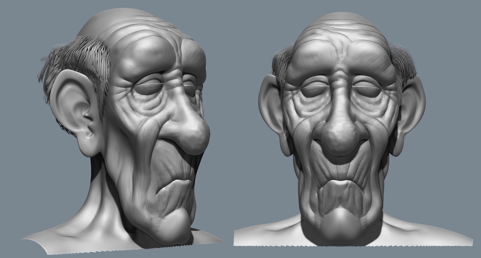 So I did the second sculpting pass on this guy basically just making the wrinkles more pronounced and started to break the symmetry. Added some quick fibers for good measure. again original concept from Kevin Keele.