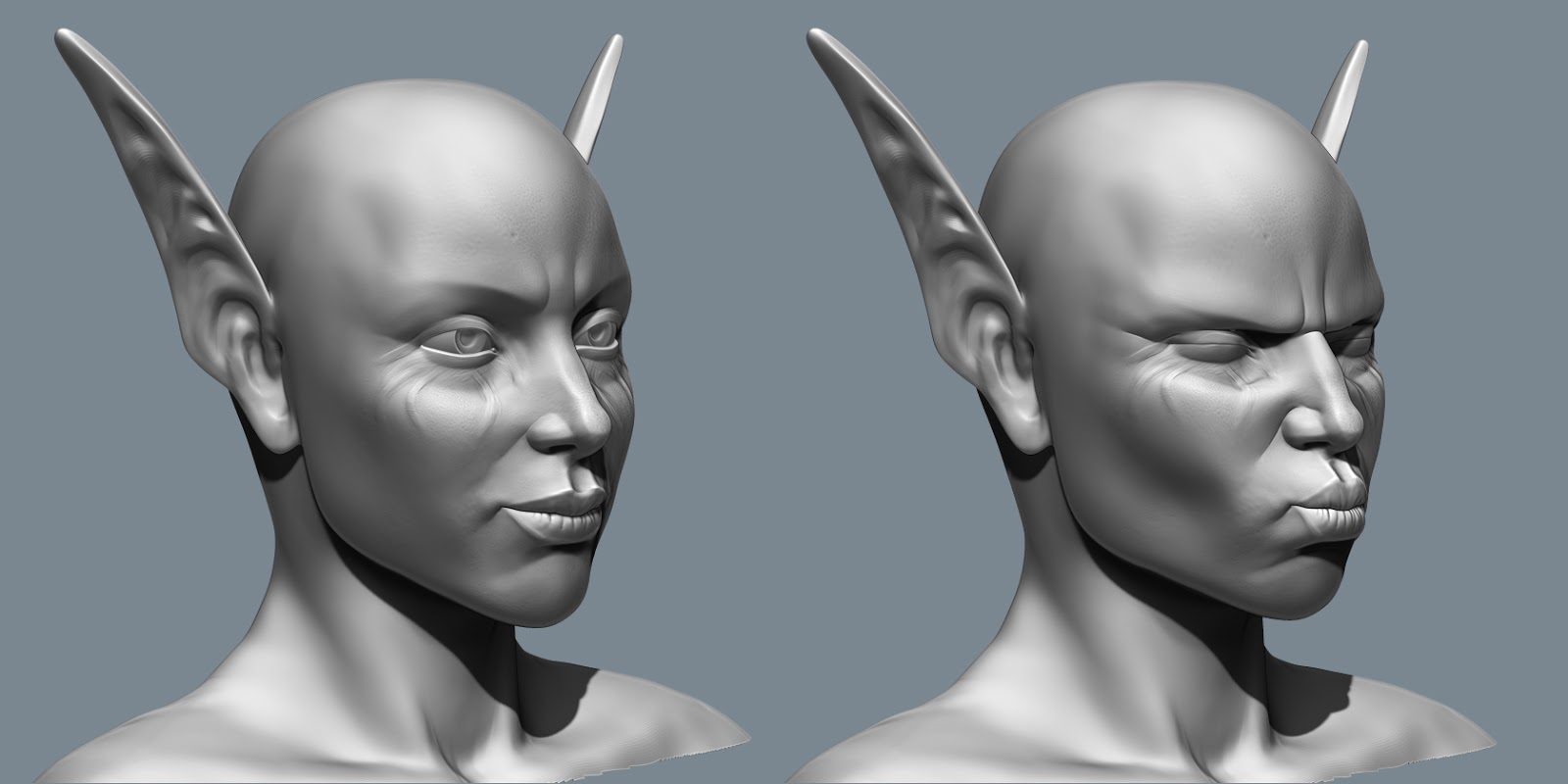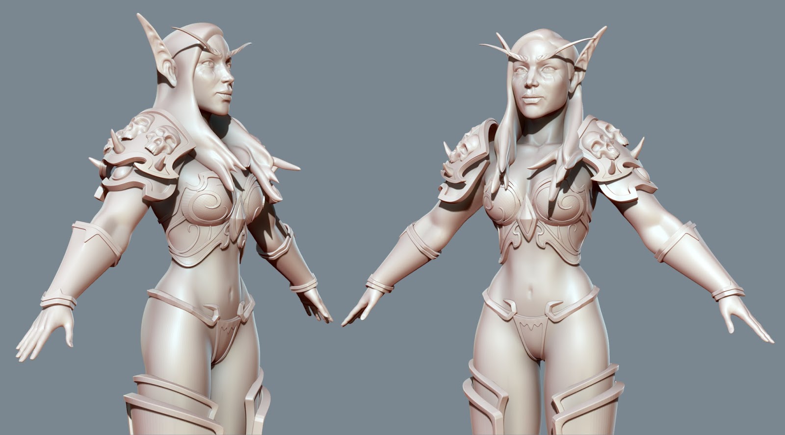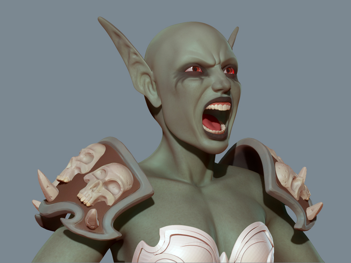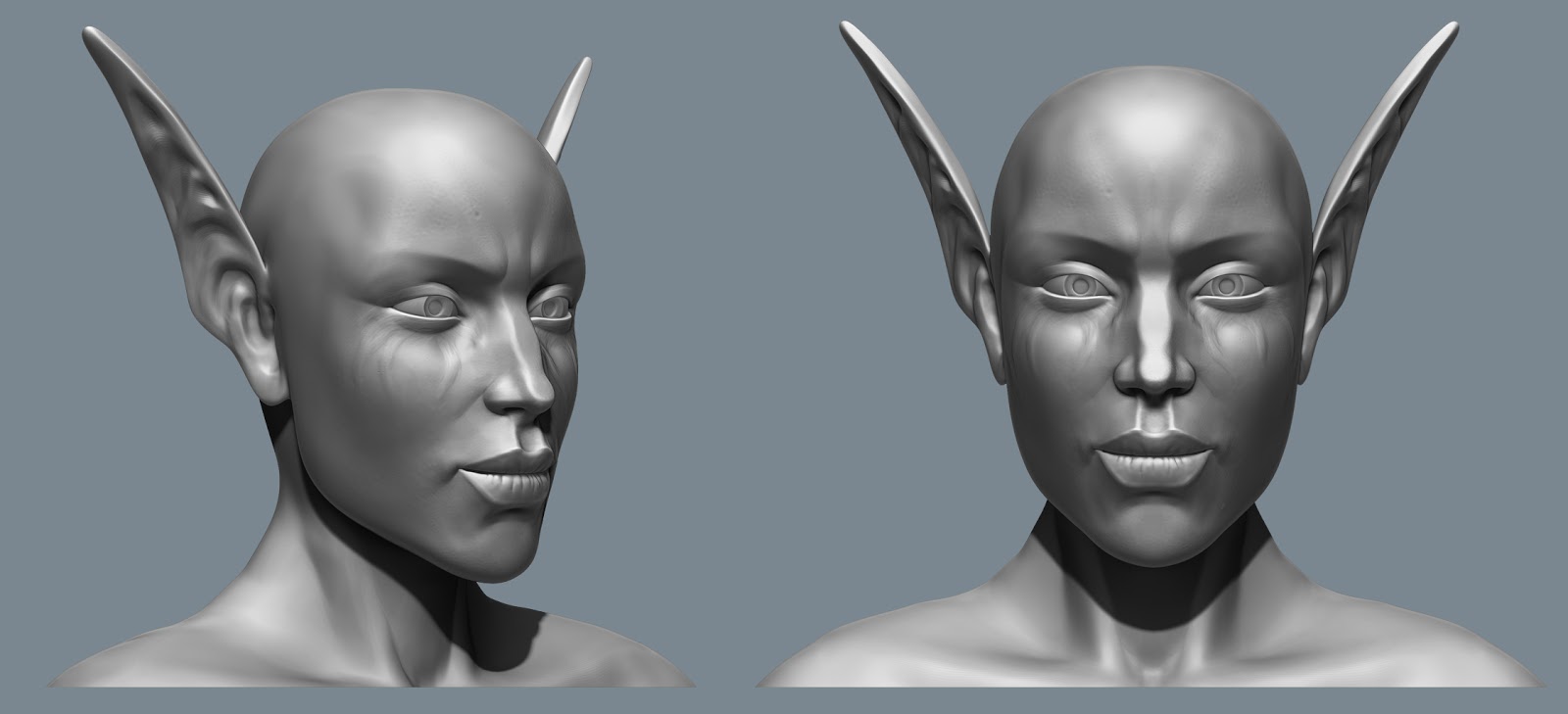 So I am back on Sylvanas still mushing around with her face. Its challenging, making a face that is strong and beautiful. I mean I have to thing female features, everything is smooth and on the surface, with an androgynous kick to it, bold, deeper, more pronounced features.