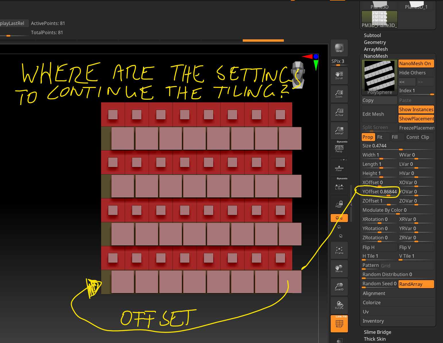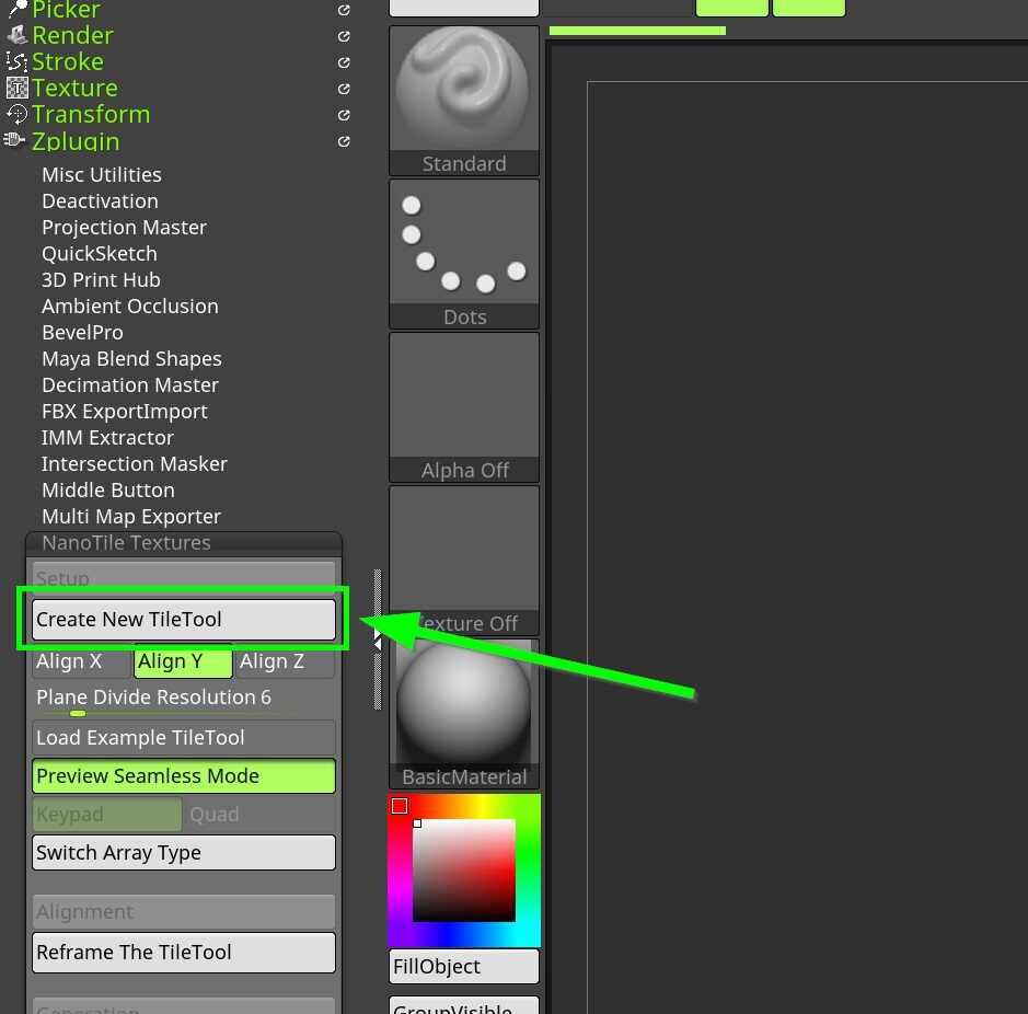 NanoTile Textures is a plugin that allows for the creation of tiling textures using NanoMeshes, InsertMeshes, and even sculptable WrapMode planes inside of ZBrush.
