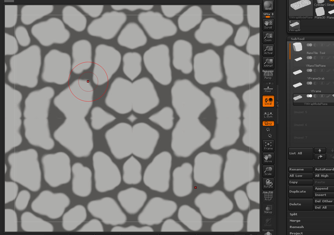 @decorix: I checked out your TexturePlane. To get it to work; set the Align to âAlign Zâ then run âCreate New TileTool.â After that is processed; append the âTexturePlaneâ Subtool to the newly created NanoTile Tool. Scale the appended âTexturePlaneâ Subtool by 100 [Tool:Deformation:Size].