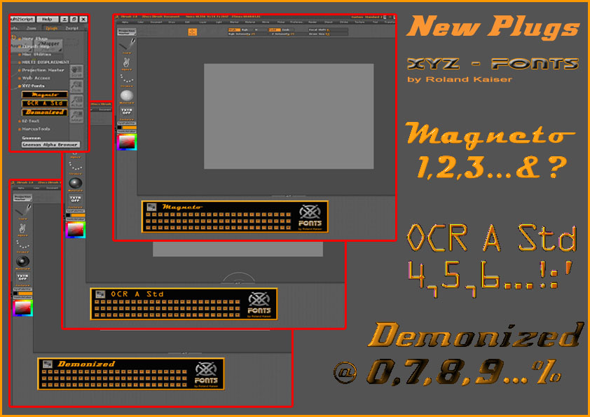After installation, you will find a new submenue called “XYZ-Fonts” in your ZPlugin menue. It includes three new buttons and every button is named according the font name.