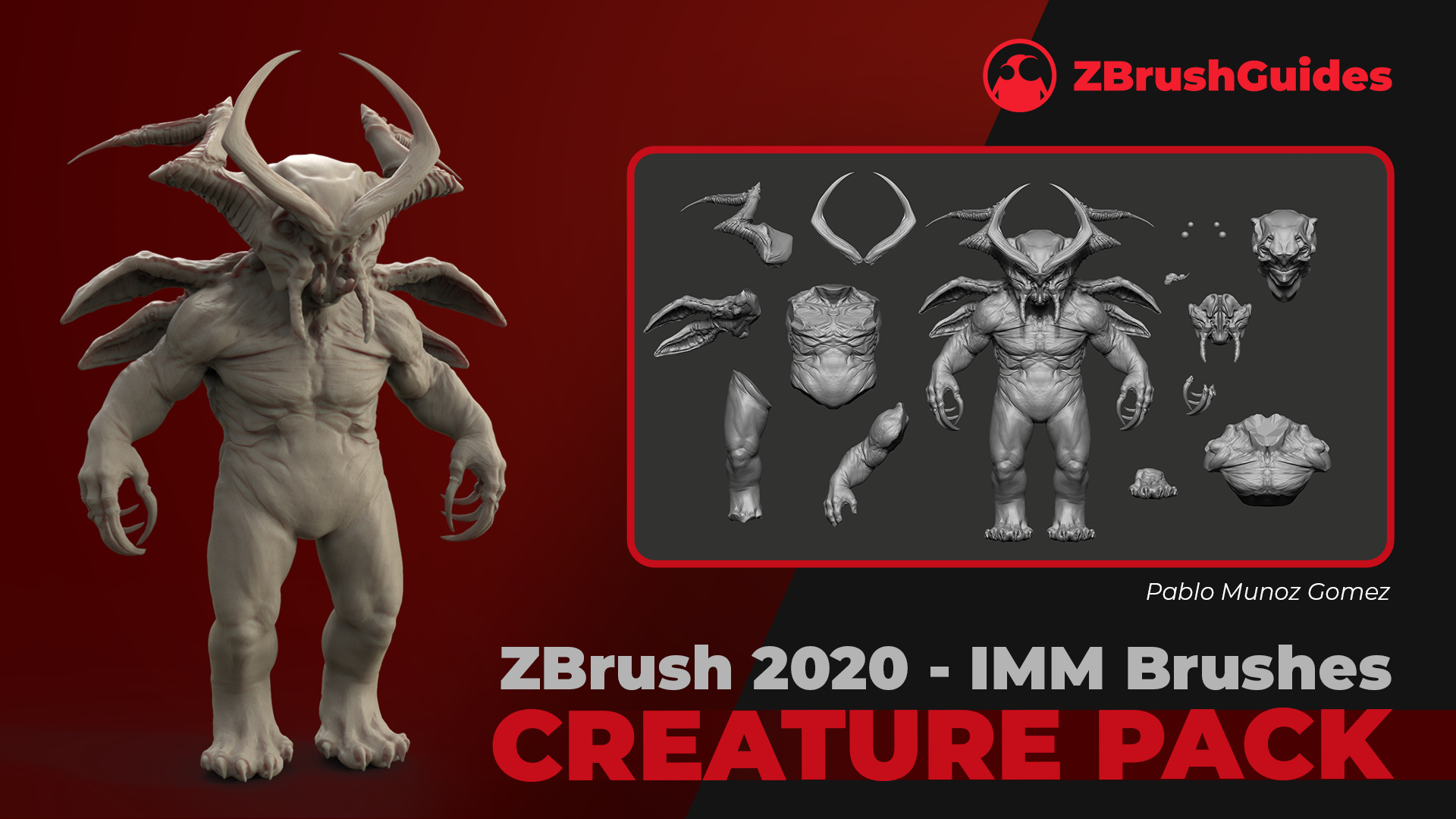 The pack is essentially a curated set of more than 100 decimated meshes distributed in 5 awesome IMM brushes for ZBrush 2020. The ‘insert meshes’ in the pack include heads, torsos, legs, arms, and misc (horns, tales, and other weird stuff haha).