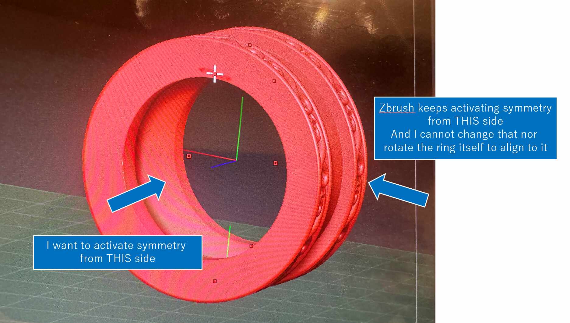 I’m not concerned about the “view” I want to literally rotate its spacial position in Zbrush so this silly thing understand it makes sense to apply radial symmetry on the ring’s outer surface and not by facing its side.