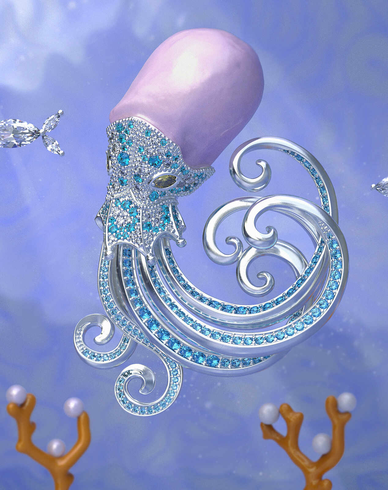 I forgot to attche this render I made during the designing process, it based on the pavés layouts normally made on the wax carved models where you paint over the surface for the gems distribution and sizes choice.