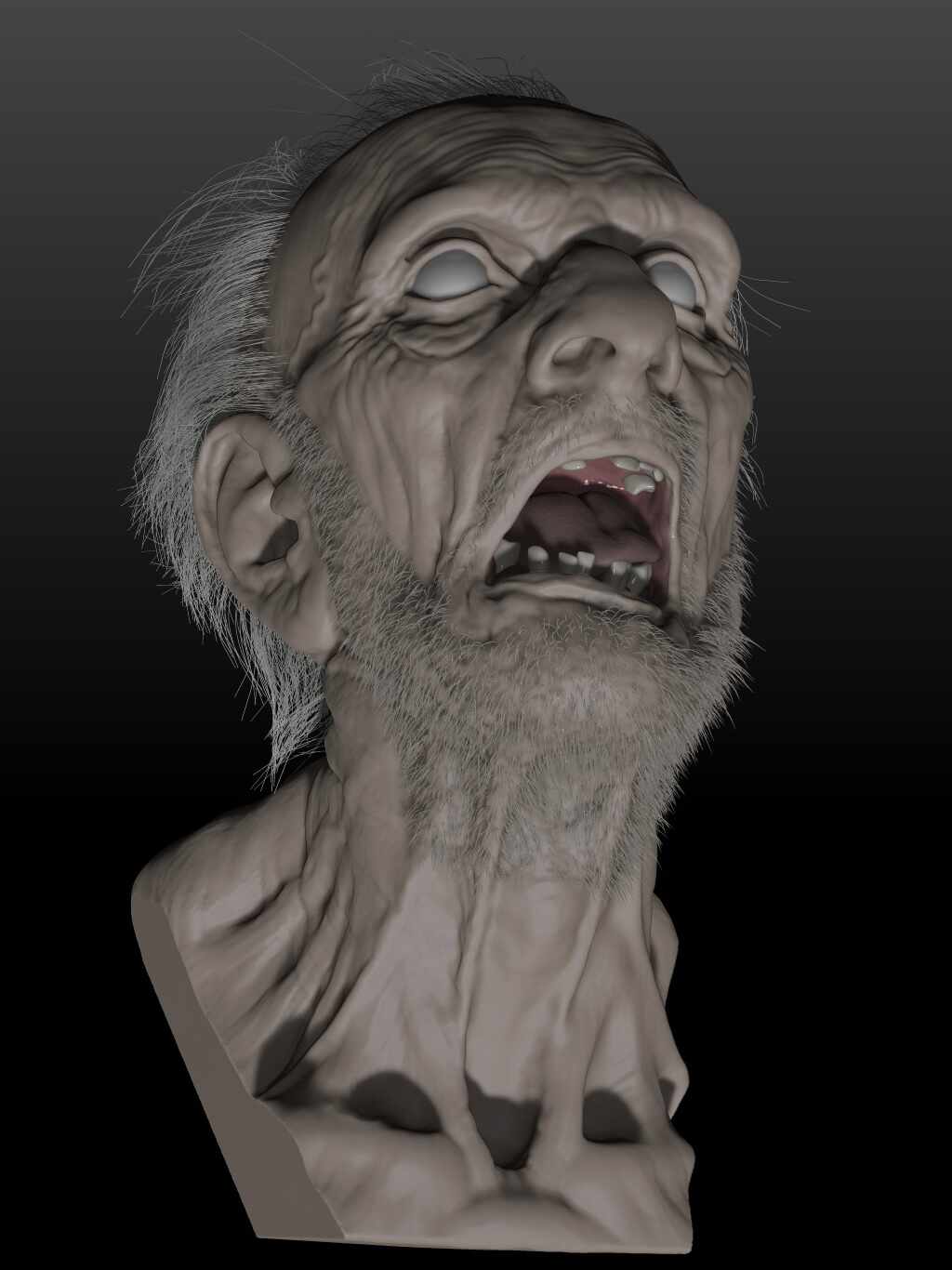 Blocked out character of an old, dead creepy guy for an animatronic prop. First sculpture in ZBrush for iPad! had a lot of fun doing this. Staying away from details as I am printing, full scale and molding for a clay copy to eventually make a rubber head.