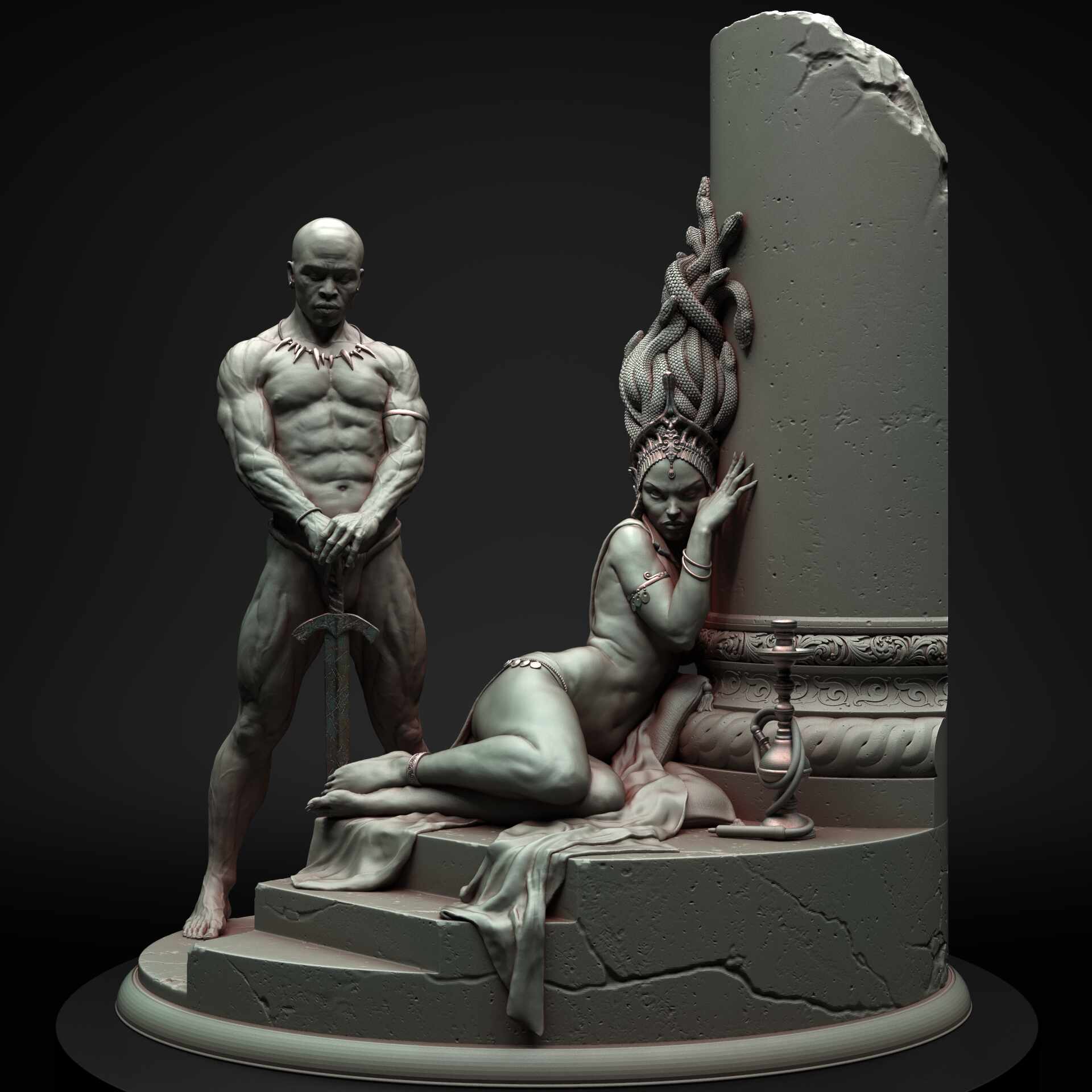 The biggest challenge here was perspective and proportions, as the original artwork places the characters at least 2 meters away from each other, so bringing them together in a tight sculptural composition while respecting the concept was a real thing. The scenography added an extra piece to the whole composition and visual weight puzzle.