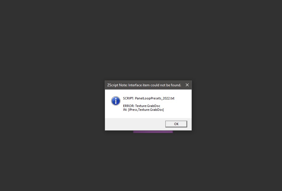 Zbrush interface item could not be found - Error: Texture:Grabdoc