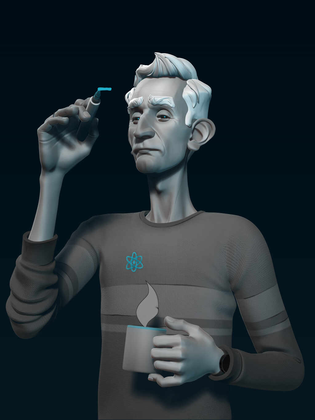 The scientist I created for the beta-test, along with a couple of sketches.