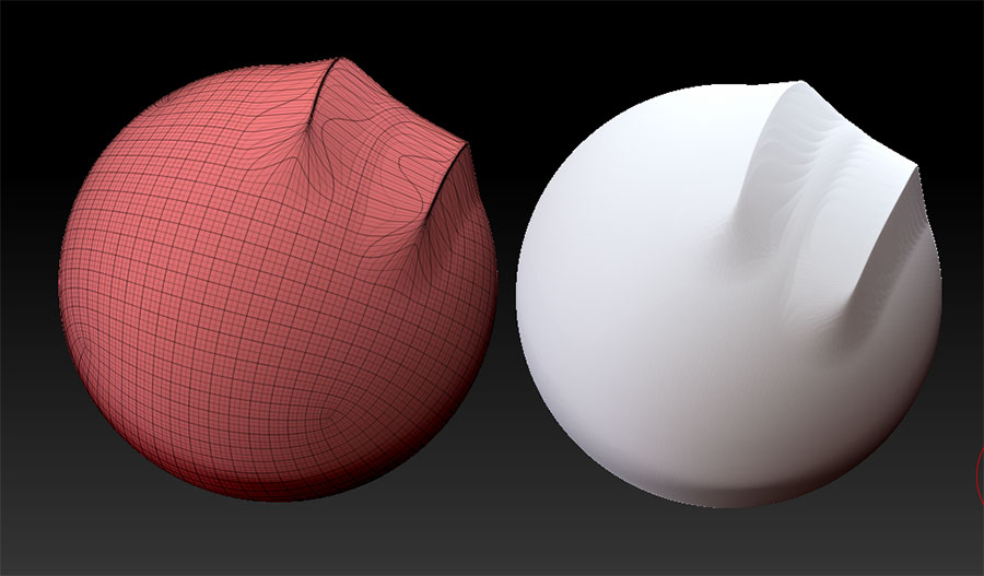 But this is not working like before. The brush is not more pushing or pulling the mesh together with the pinching when we set the brush modifier to 100% in ZBRUSH 2021.