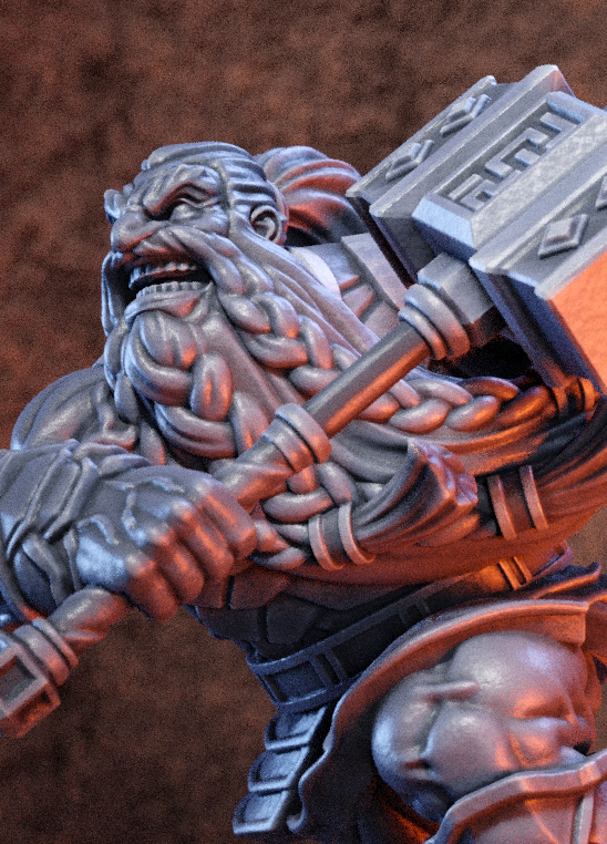 Another sculpt for the miniatures game Pit FIghter Blood On The Sands created by Greg Kourakos aka 3DPrintingPro on Youtube. This one tried to really capture the dynamic action of the dwarf chargin in with his hammers!