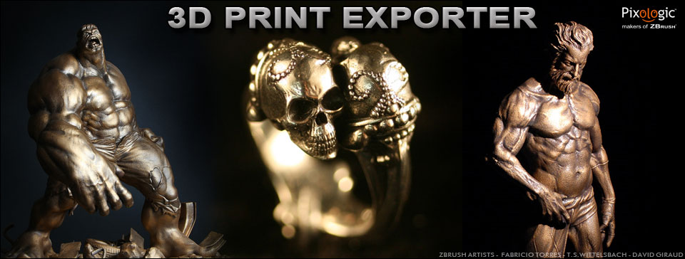 With <b>3D</b><b>P</b><b>rint Exporter</b> you will be able to export your favorite ZTool in <b>STL</b> and <b>VRML</b> file formats, opening you to the world of <b>3D Printing</b>.