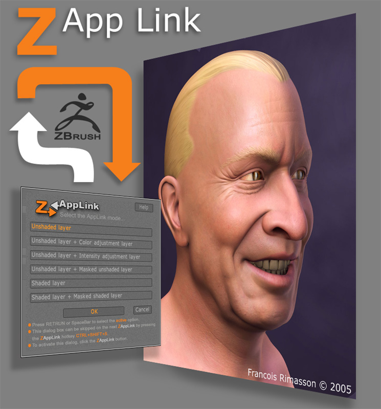 Continuing the Roadmap to ZBrush 2.5, Pixologic, makers of the award-winning program ZBrush, have released a new plug-in: ZApp Link.