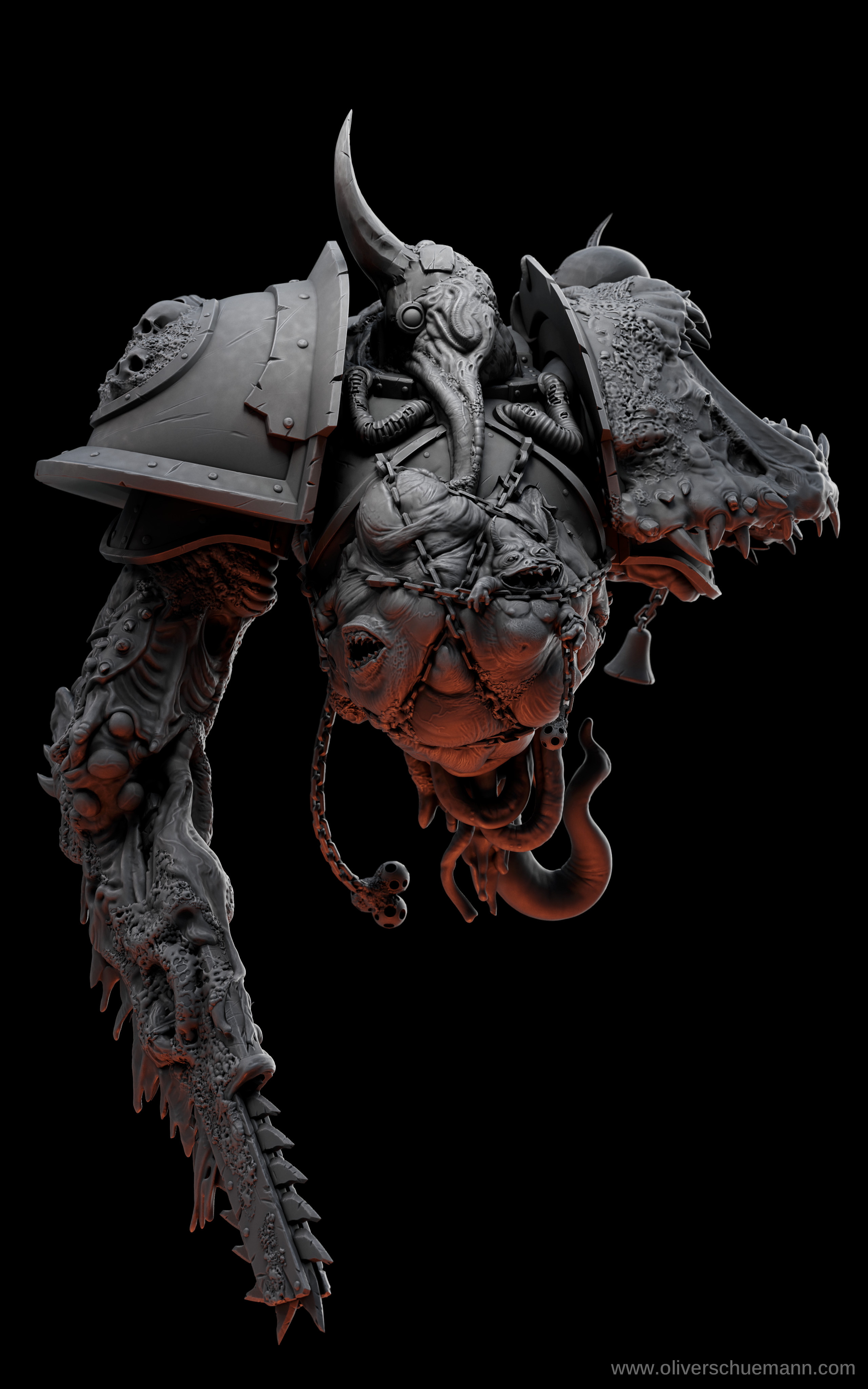 Over the last two months, I was working on this Warhammer 40k Plague Marine bust to become more comfortable with collectible and miniature sculpting. Building all these layers of details and digging deeper into the Warhammer lore was a huge fun.