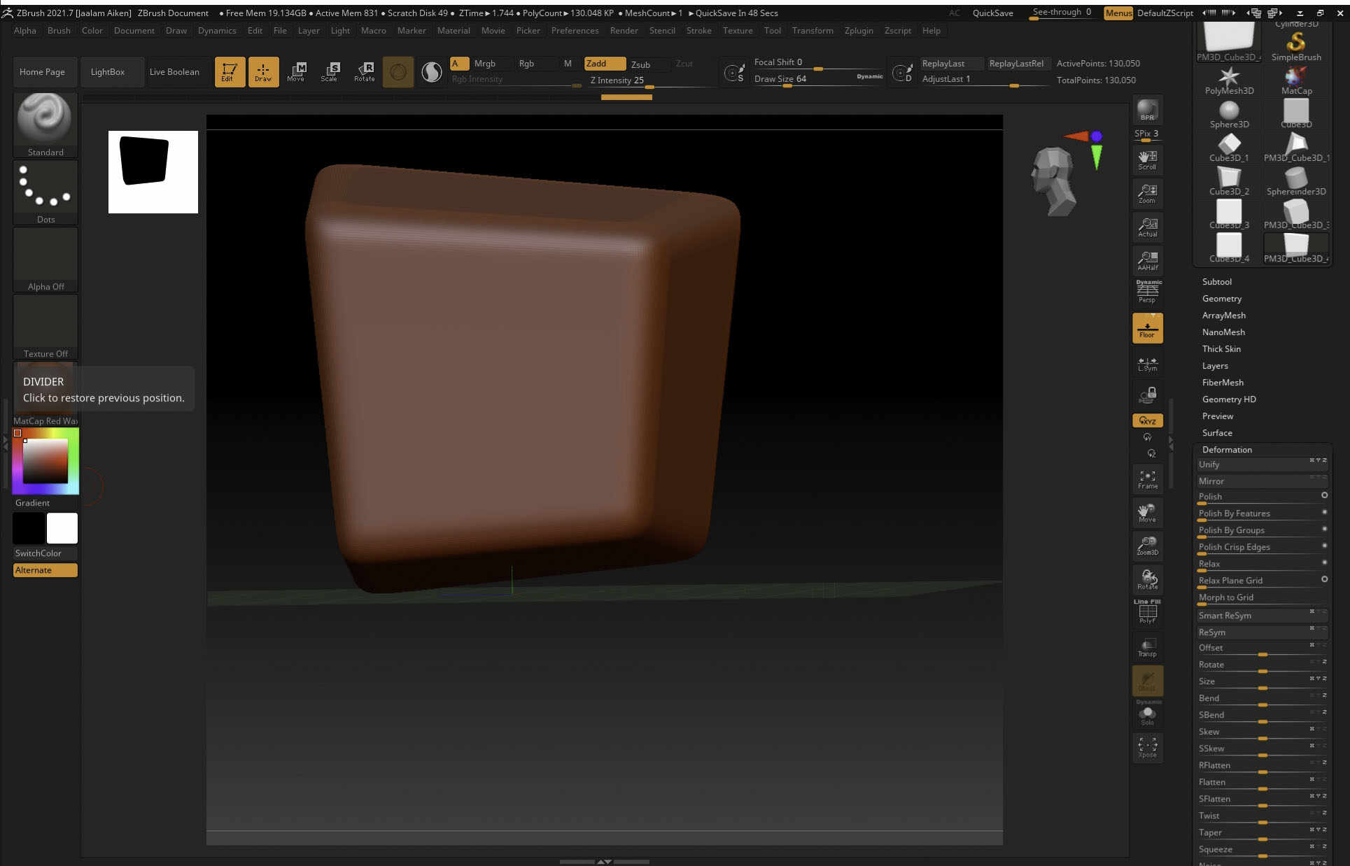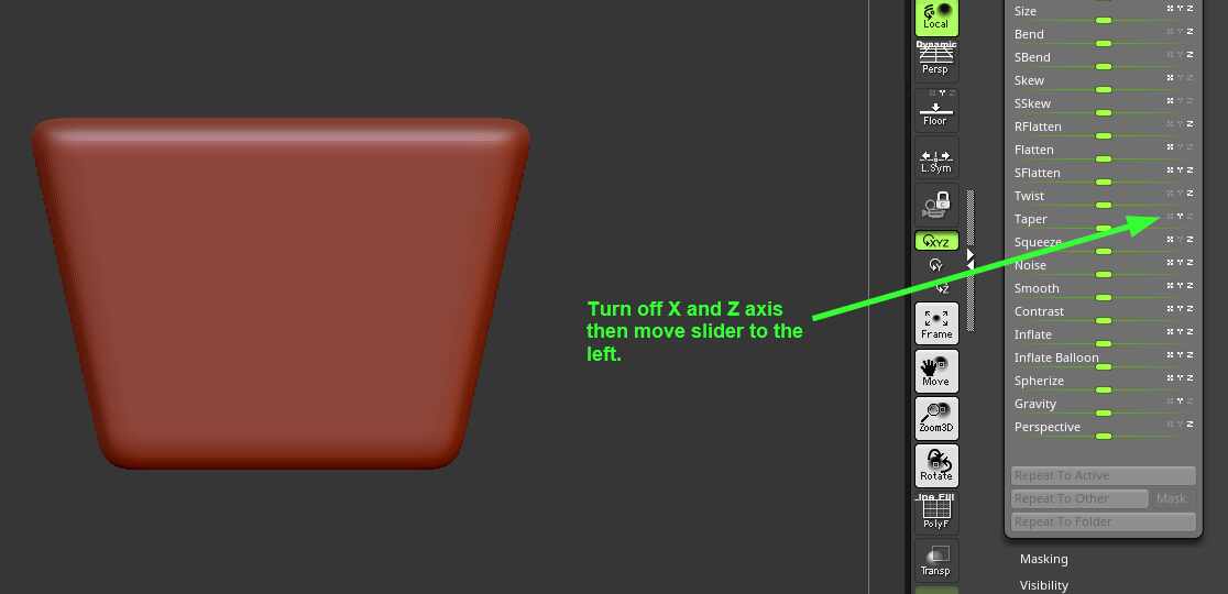 I am trying to follow a beginner tutorial but when trying to use the taper slider it tapers nothing like the tutorial one does. Can anyone tell me if this a program error or am I missing something simple? My cube is tapering from a corner rather than from the bottom of the cube.