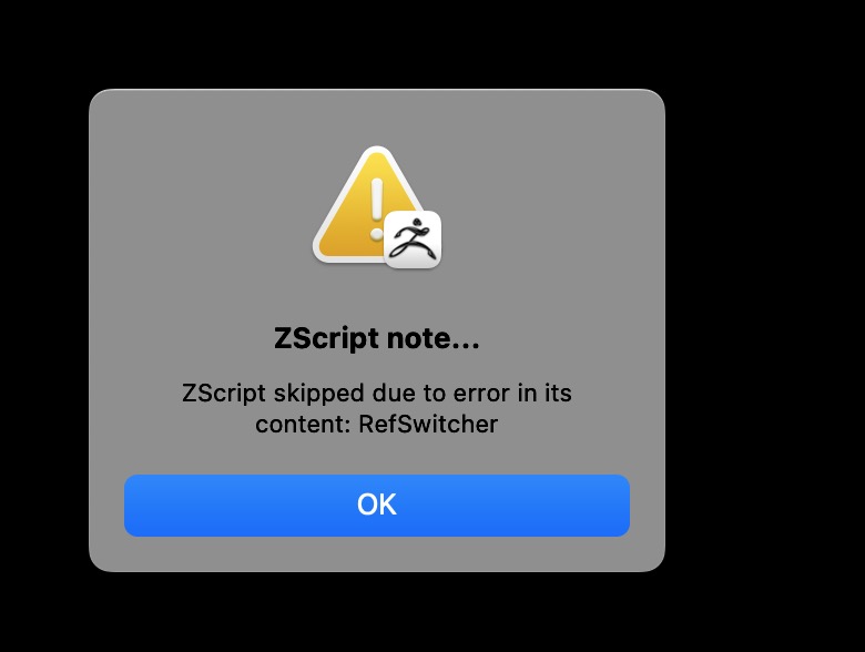 Any suggestions or workarounds to this type of error when trying to use the plugin RefSwitrcher in zbrush 2025?