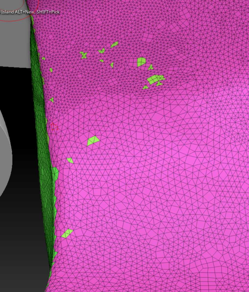 To be able to quickly and easily solve issues like this, or any problem that involves polygroup manipulation, you should be familiar with both the mesh/polygroup visibility shortcuts, as well as the various functions in the Polygroup Palette. Some quick combination of shortcuts will usually resolve most problems.