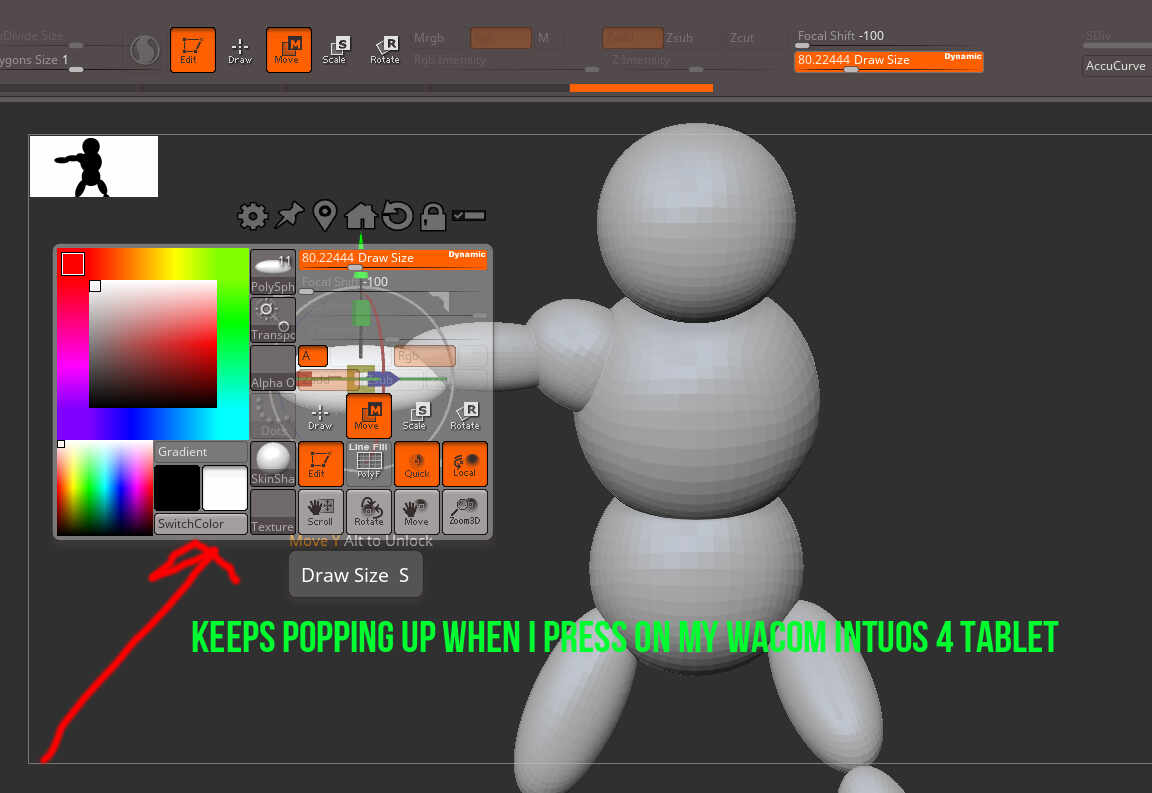 with my wacom tablet. And then when I want to sculp the popup pallet windows comes on screen