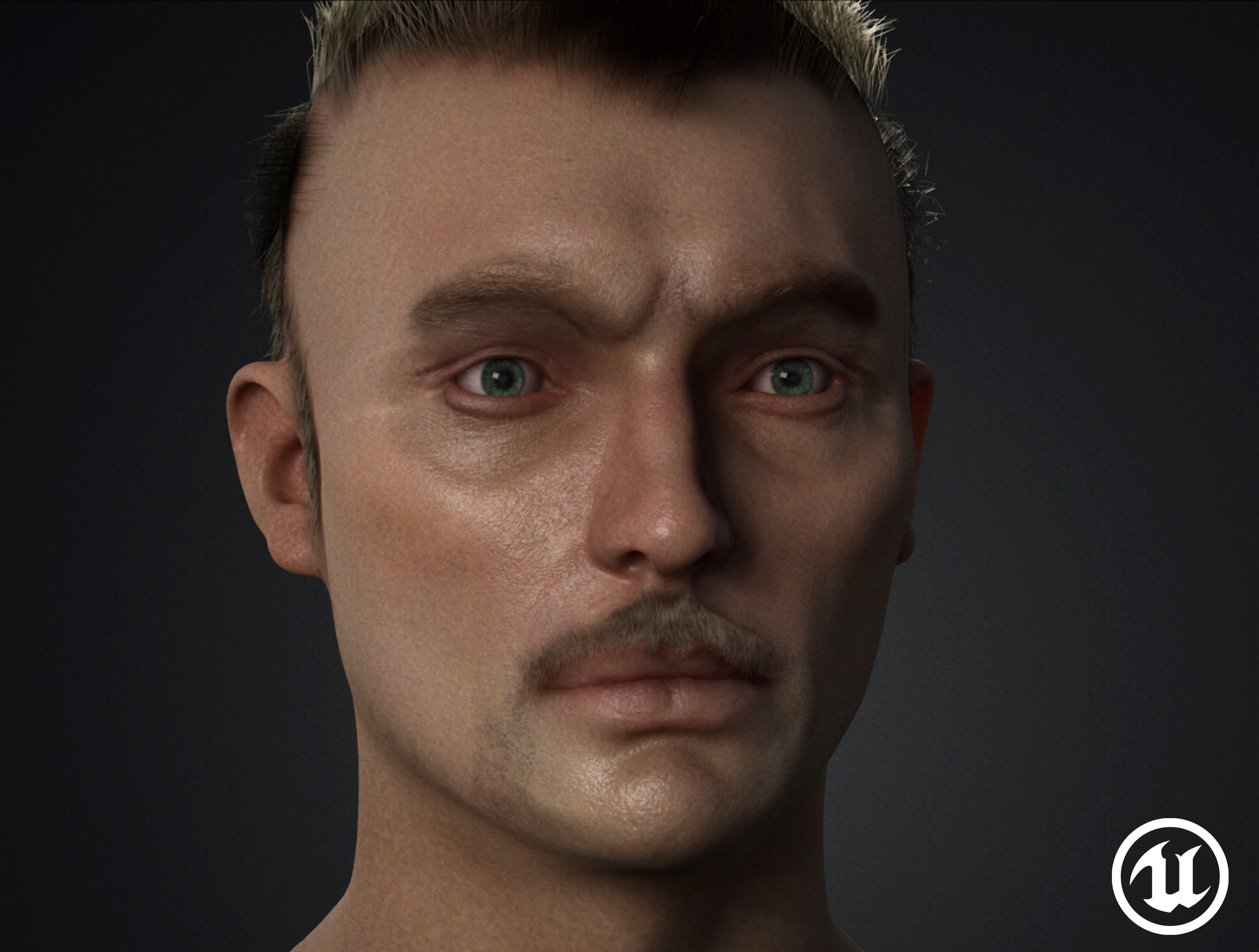 Hair and mustache are made in Xgen converted alembic and simulated with the Unreal groom plugin.