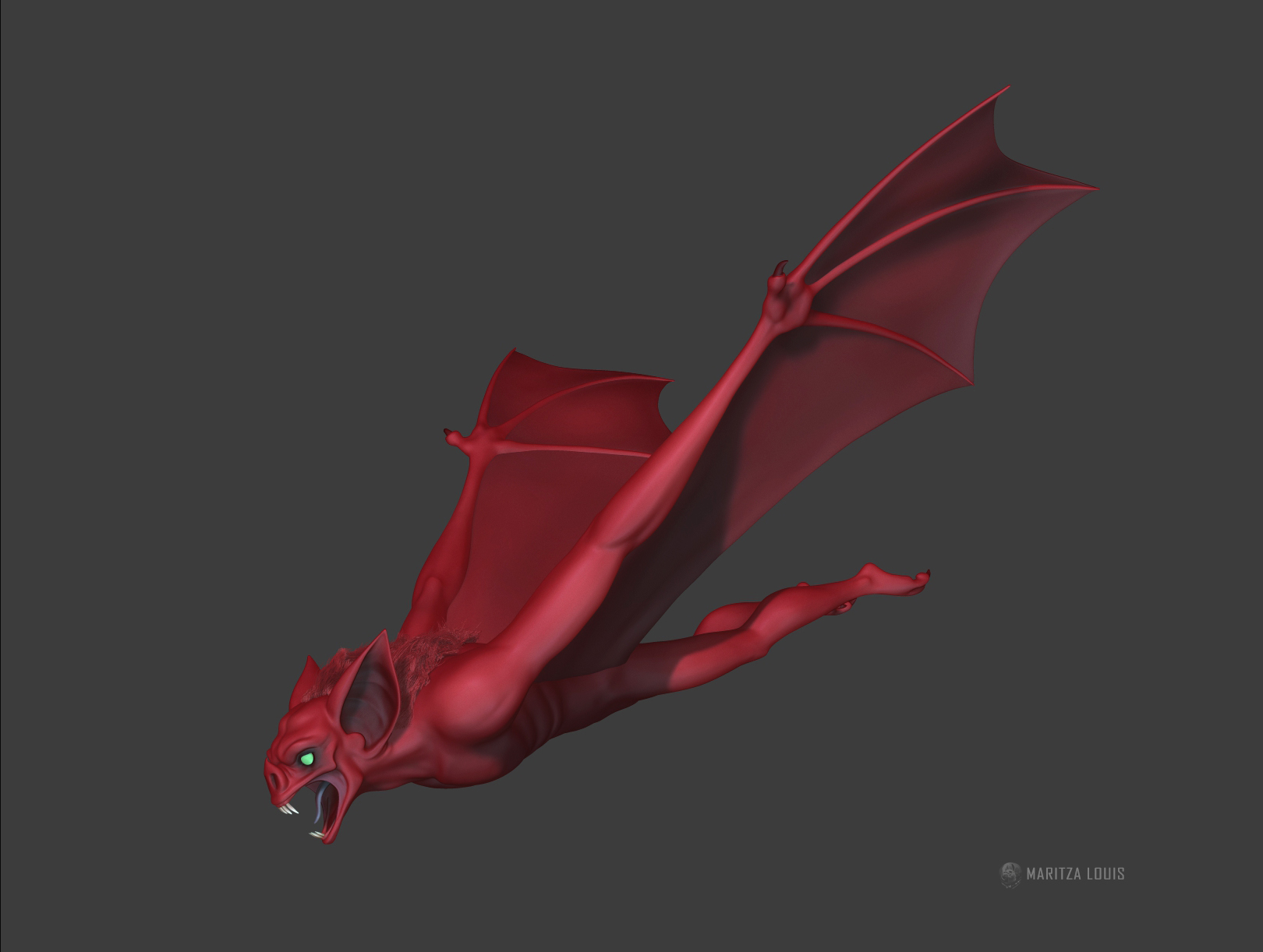 The latest series from Genndy Tartakovsky, Primal (season 2 is out) have been so visually inspiring! And Stephen DeStefano 's beautiful designs are so appealing and dynamic. I saw the prehistoric bats from “Terror Under The Blood Moon,” and I immediately wanted to sculpt them. There is something just beautiful and scary about their form.