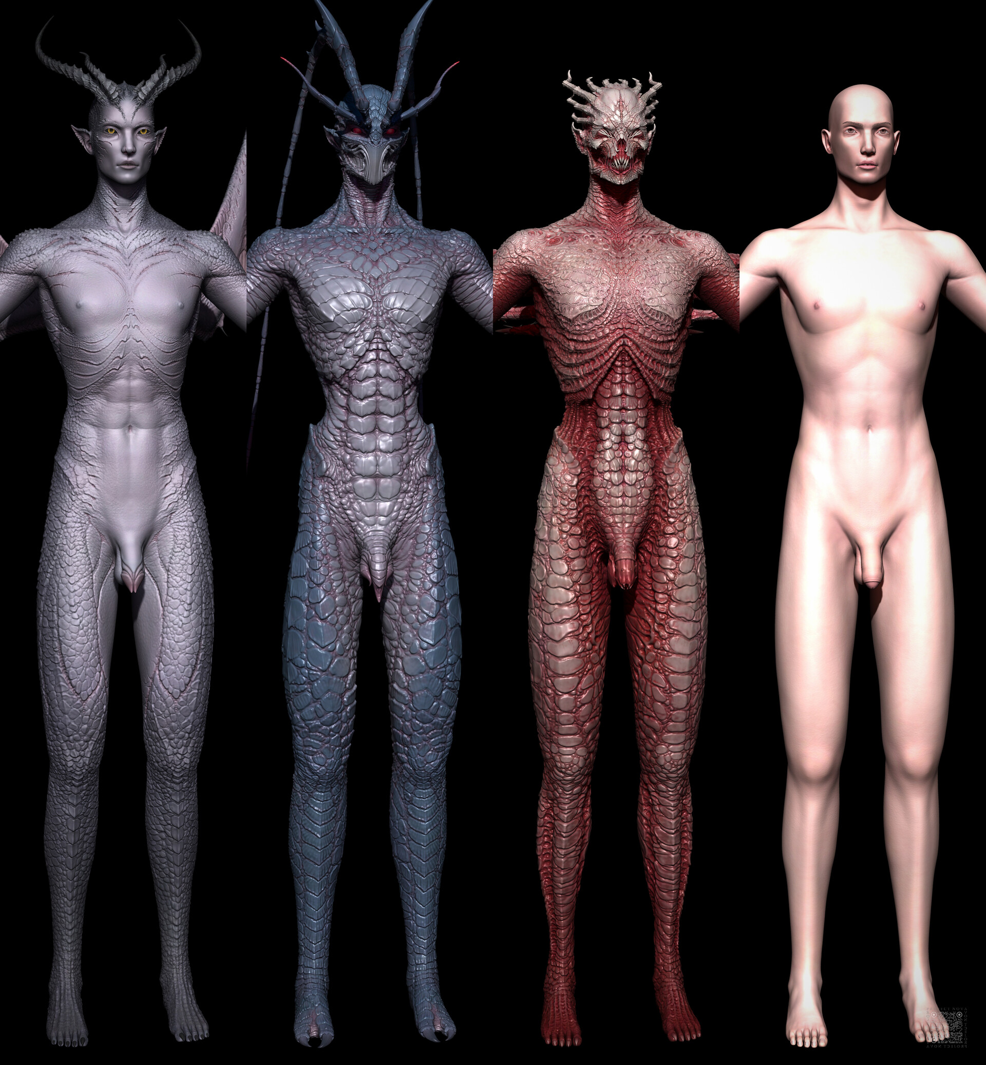 Male & female highpolys & lowpolys.