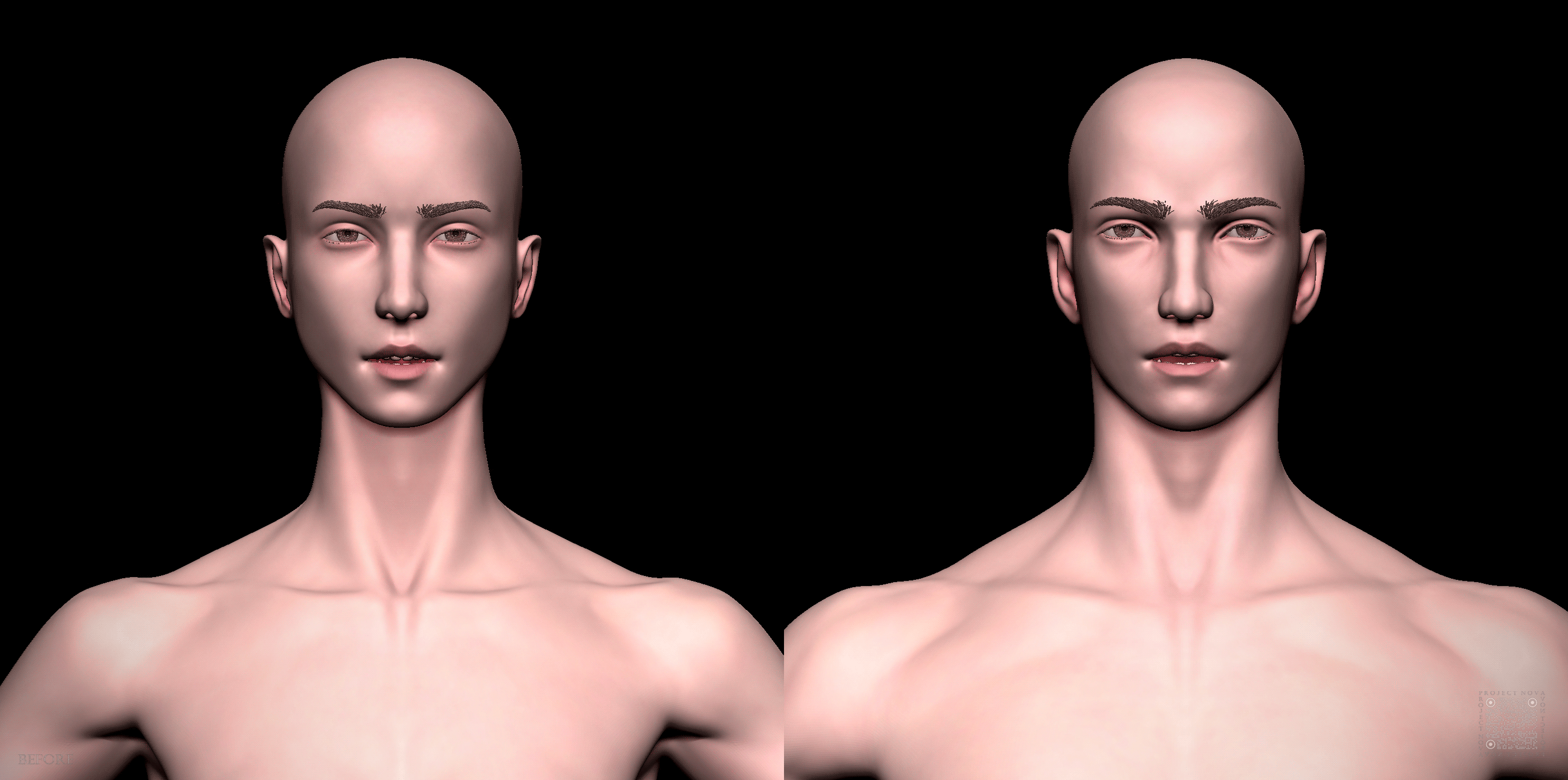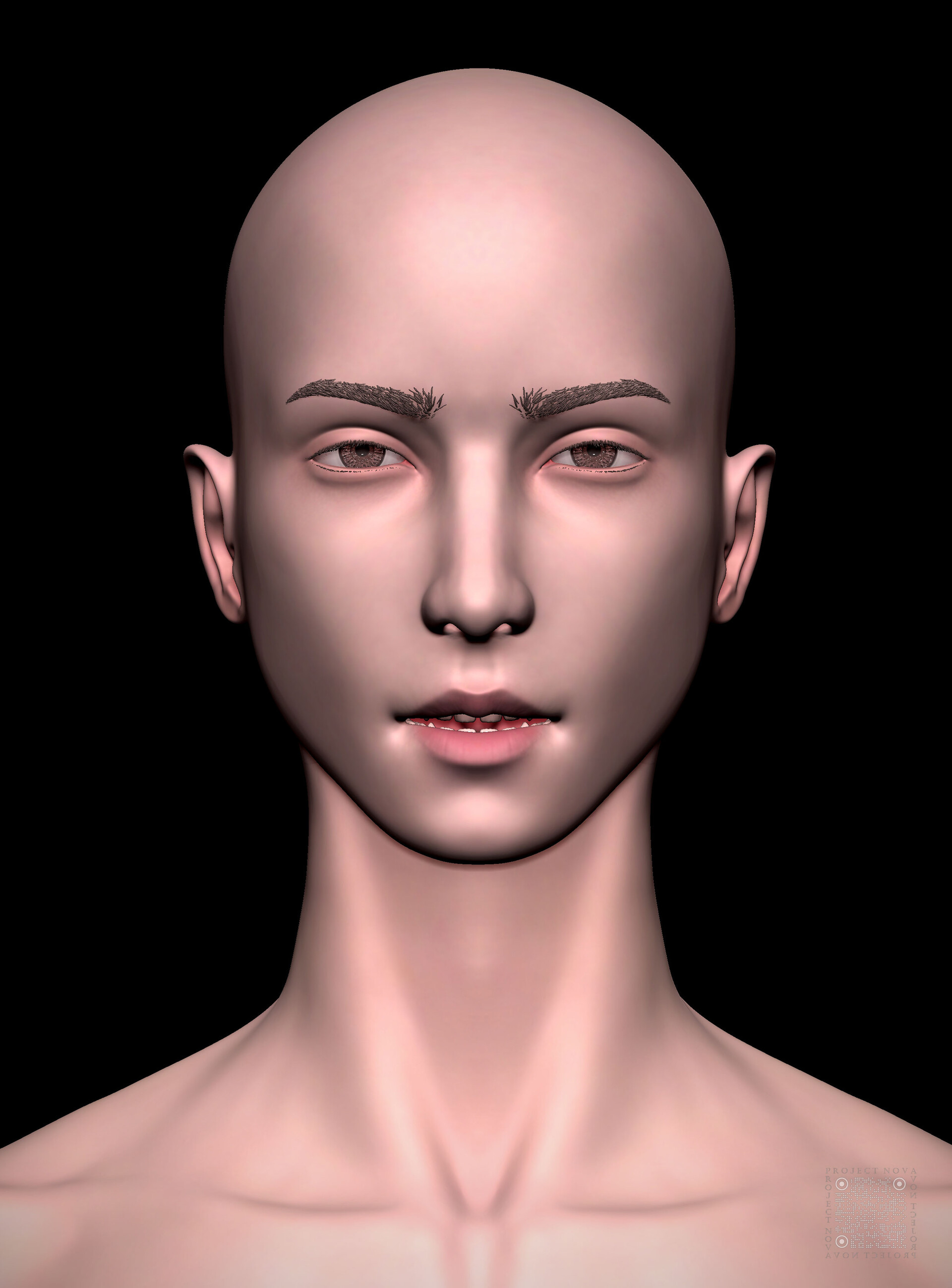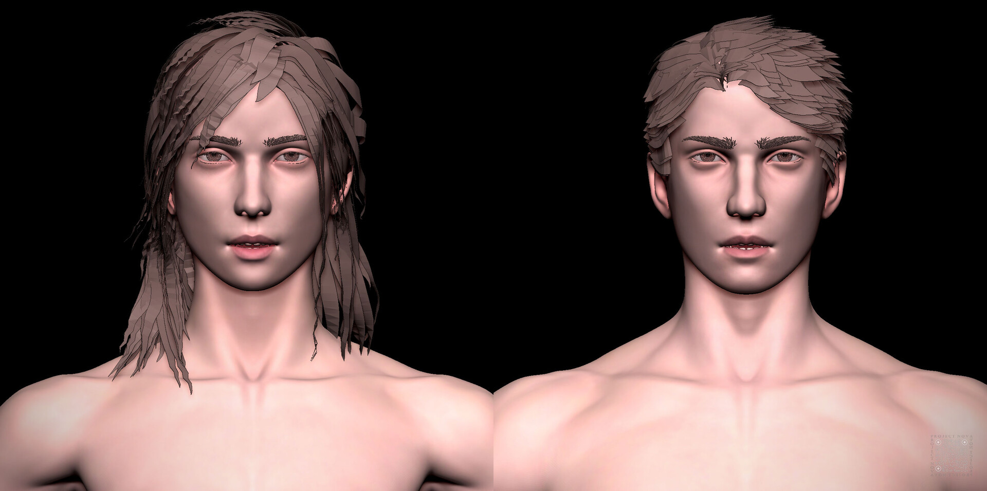 I made some less terrible placeholder hair for the female basemesh, more face ratio/proportion tweaks, smoothed out some areas. Probably pretty close to being able to start adding in finer detail like skin creases and wrinkles on the female mesh, male mesh still needs face work.
