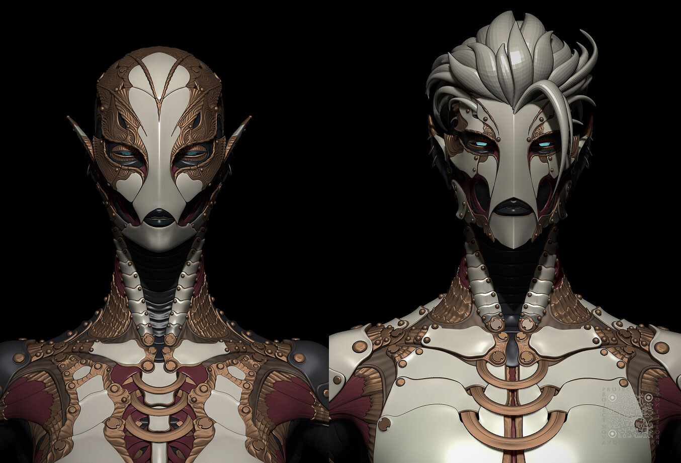 Female & male designs of the Bronze Automatons were created, from concept to UE5.