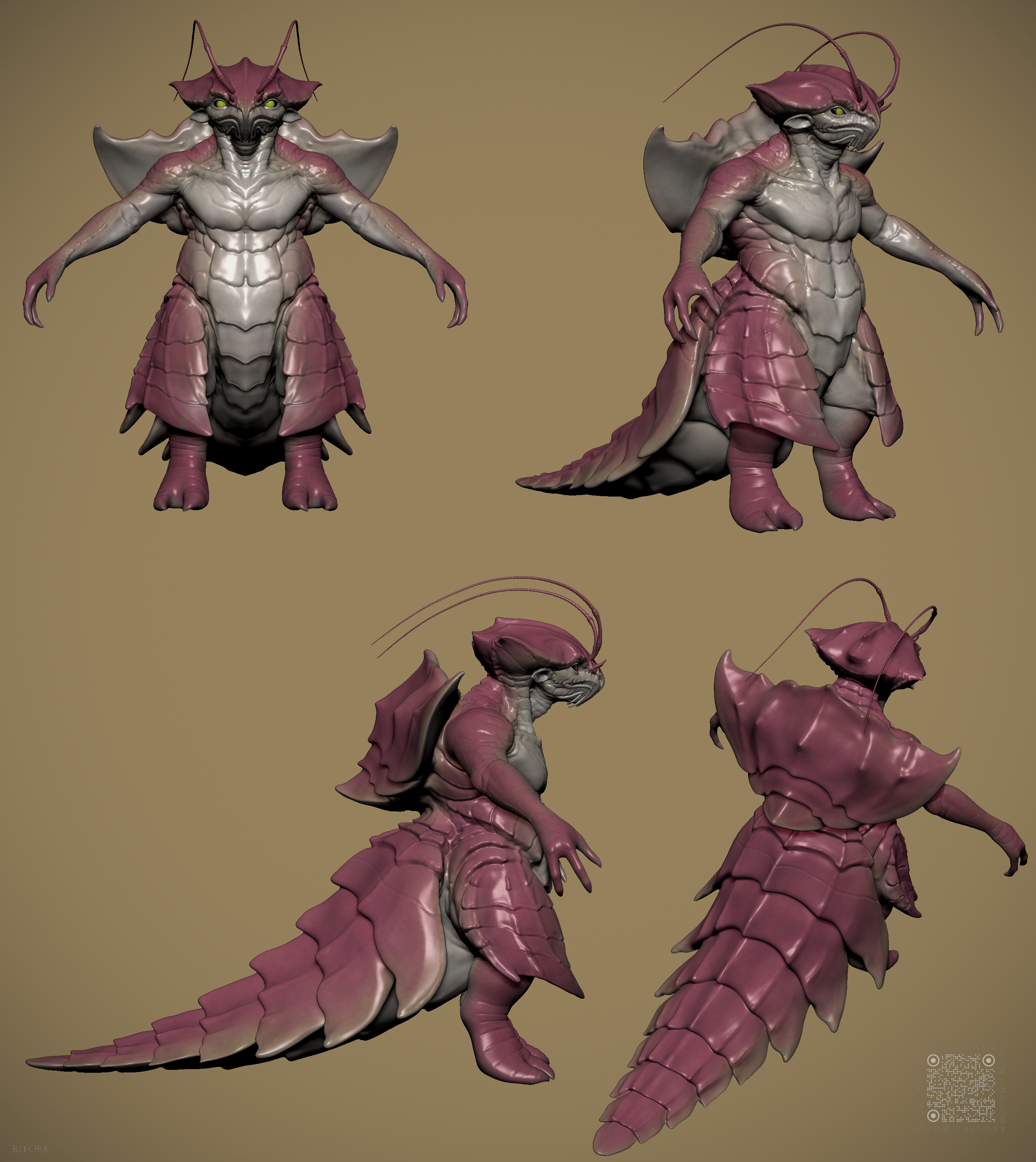 Initial concept of the male āswamp abyssalā, pushed silhouette + resizing for the male ocean abyssal.