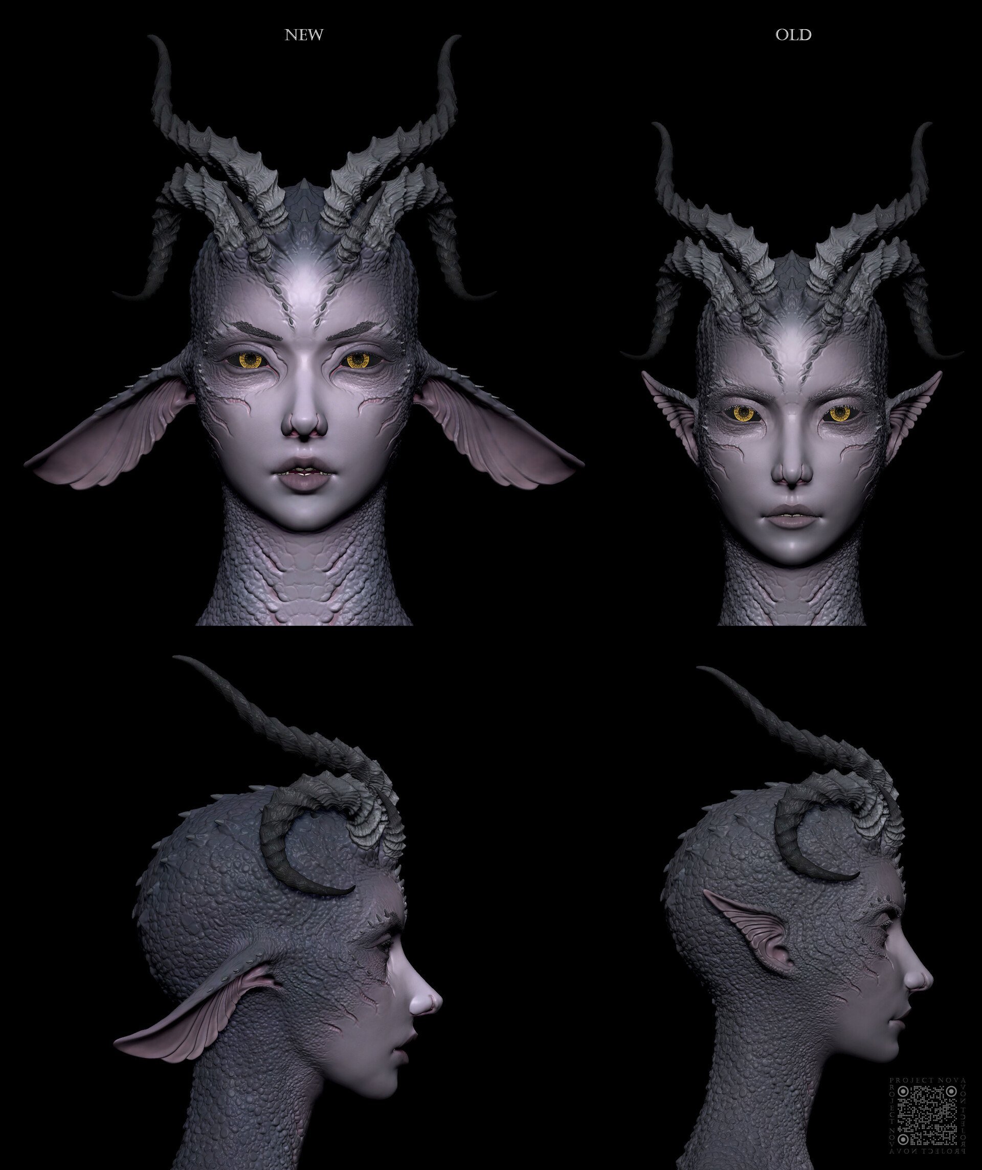 I struggled quite a lot with leveling my anatomy skills, especially facial anatomy. While I am a character artist, I primarily work on character armour. Iāve never sculpted faces before now, and it showed. I think Iāve achieved an acceptable skill level after this intense but necessary training period.