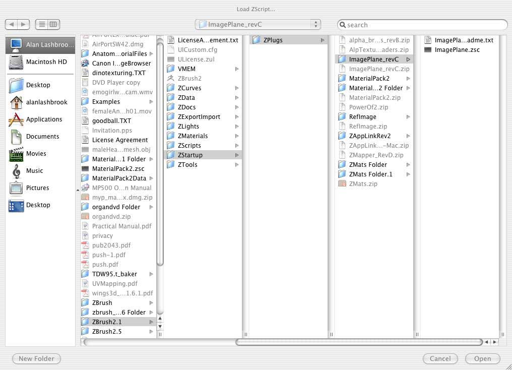 Hello, I cannot get my ZScripts to load. I’m using a Mac. I created a ZPlugs folder in my ZStartup folder. Downloaded new versions of various ZScripts. Restarted ZBrush, tried using the load button under the ZScript button, etc. Any help would be appreciated.