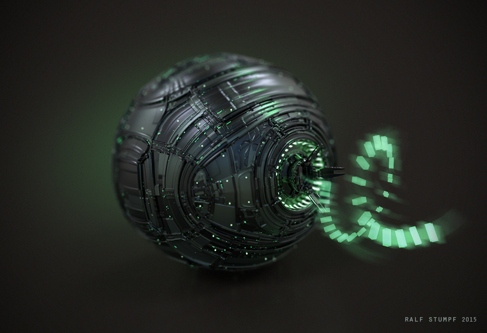 The greebles make the sphere look huge, but the DOF makes it look tiny. I like it!
