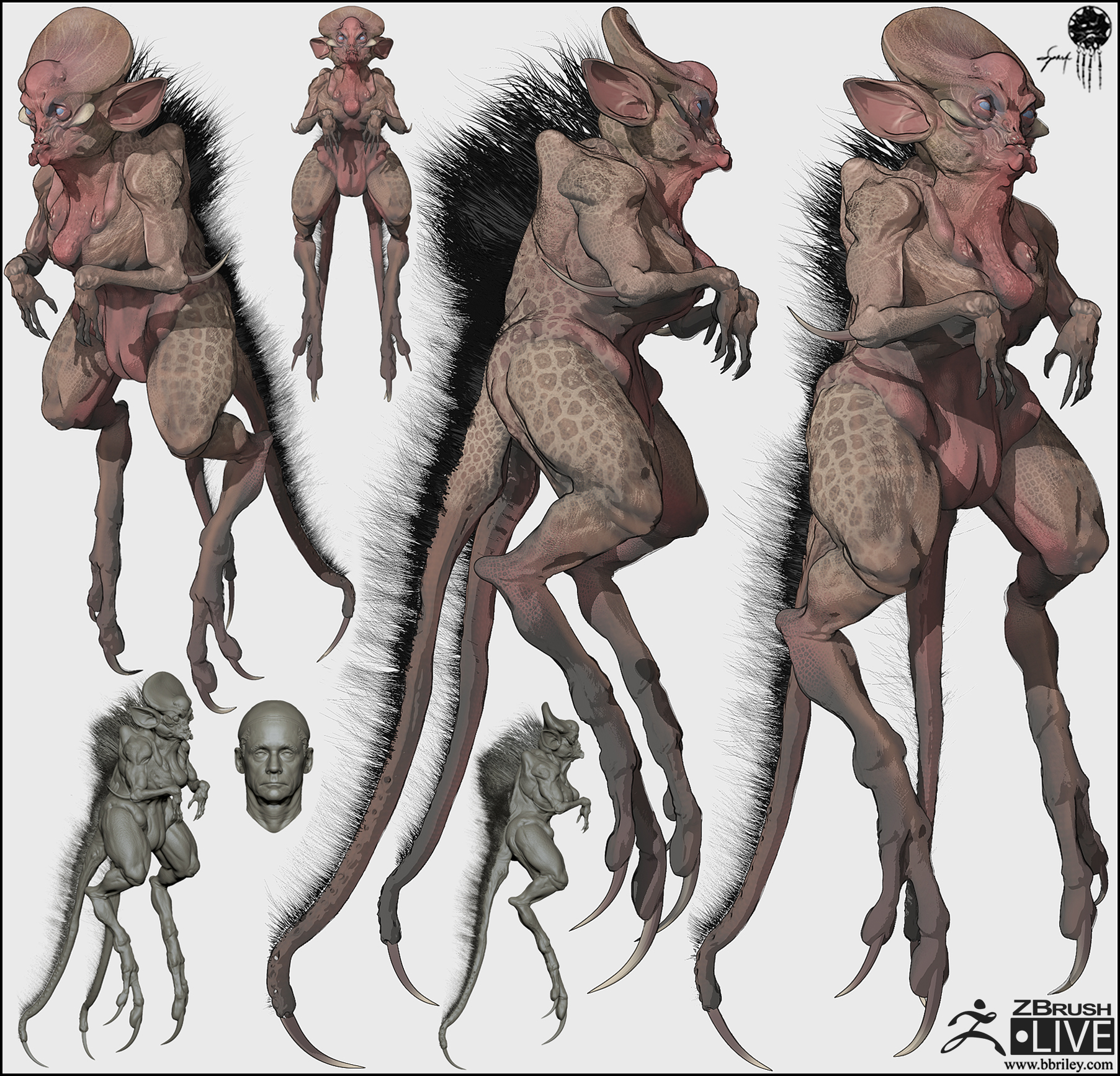 Here is a new creature created for my Zbrush Live channel. It’s a cross between a rat, kangaroo, giraffe, and beast of some sort. Here is a link to the video on Pixologic’s Zbrush Live channel as well.