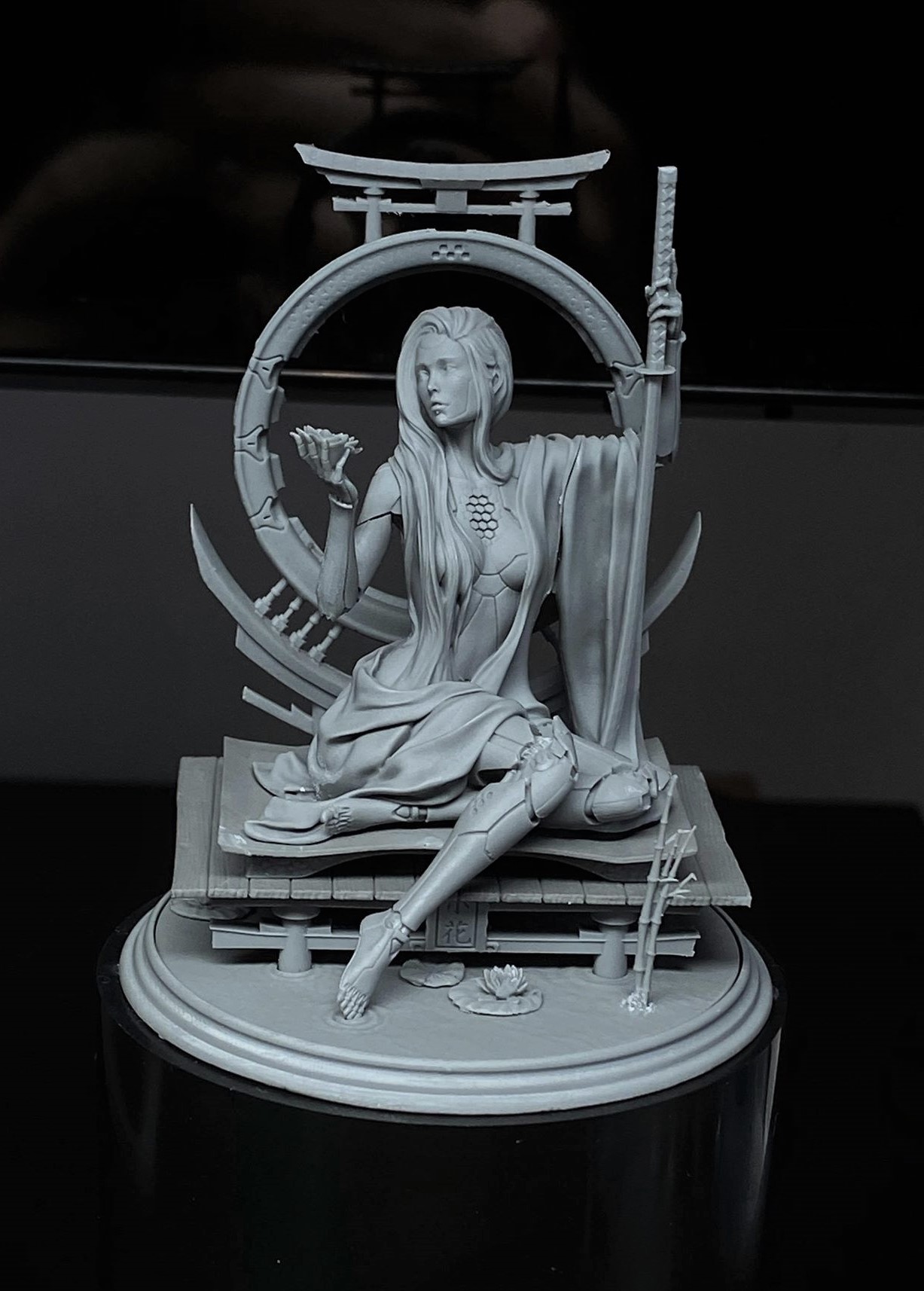 RE-KONNECT is based on the iconic bust Kohana from Robot Rocket miniatures, but depicts her in a more peaceful state. What we tried to achieve with this piece was the look and feel of a classical sculpture with a scifi twist! It will be produced into a 75mm resin Kit. Hope you like!