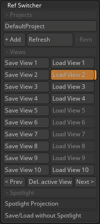You can create and delete project folders inside the plug-in. Each project has 10 slots for custom views.