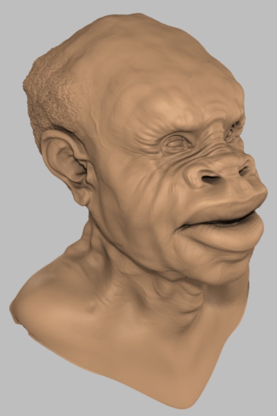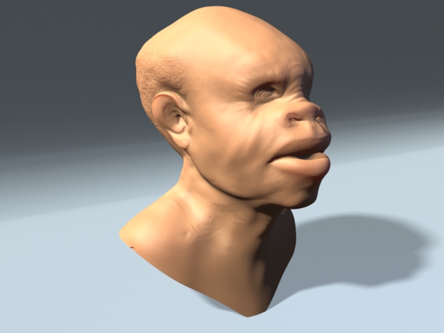 Here is the ape head with Modo LXO file. You must use the displacment map in this archive as its been fliped verticaly, the original isnt. There was no messing with this, just imported, applied the map and added a floor and sss to the head.