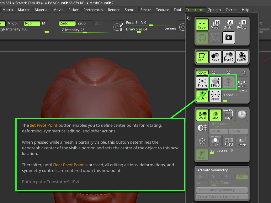 Is there a way to place them, but return them to the scene center so I can do symmetry work on them, and return them into place? Or some variation of it, like having subtools that can mimic the rotation and translation of the teeth?
