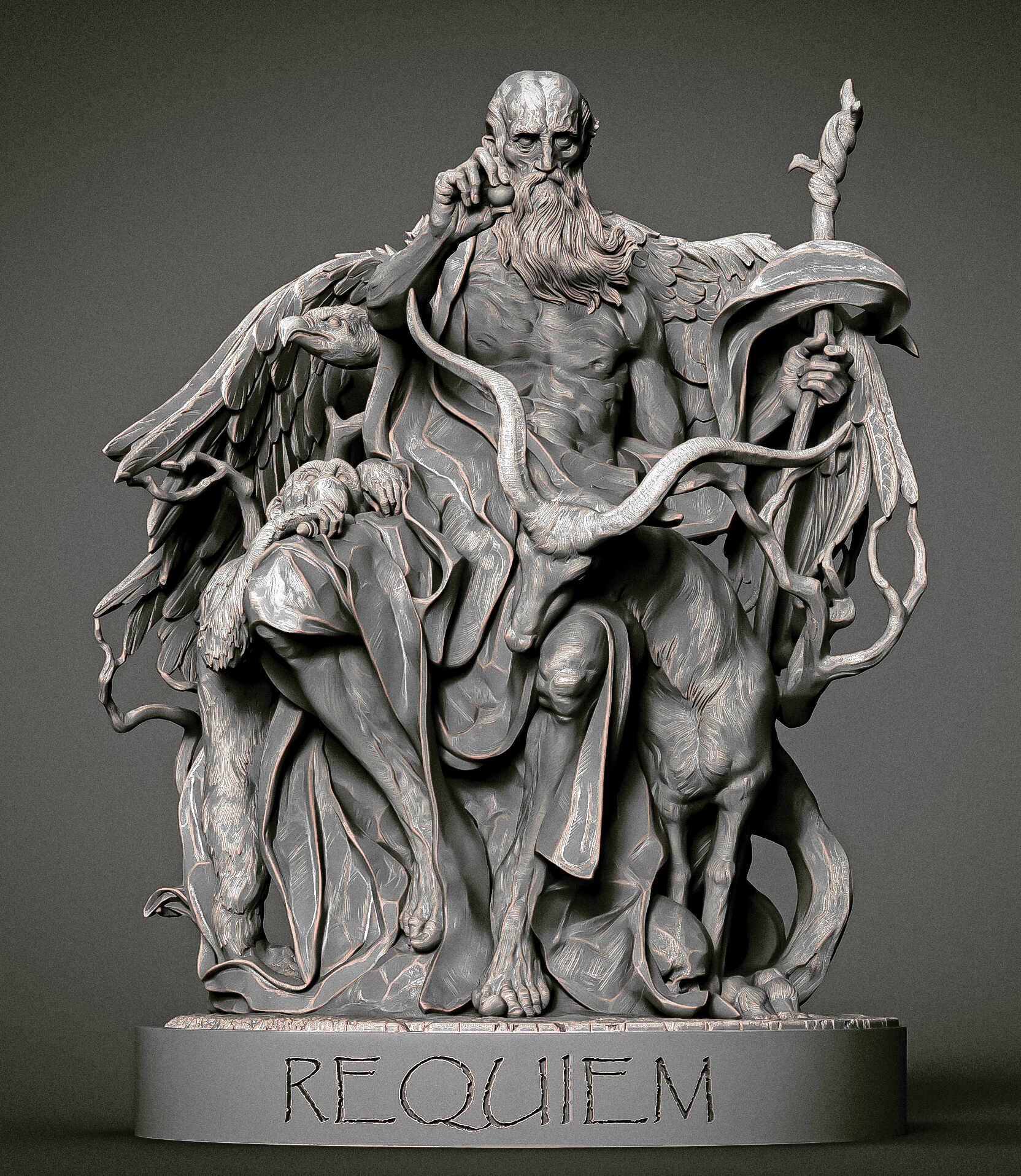 The sculpture was created in ZBrush, and rendered in KeyShot.