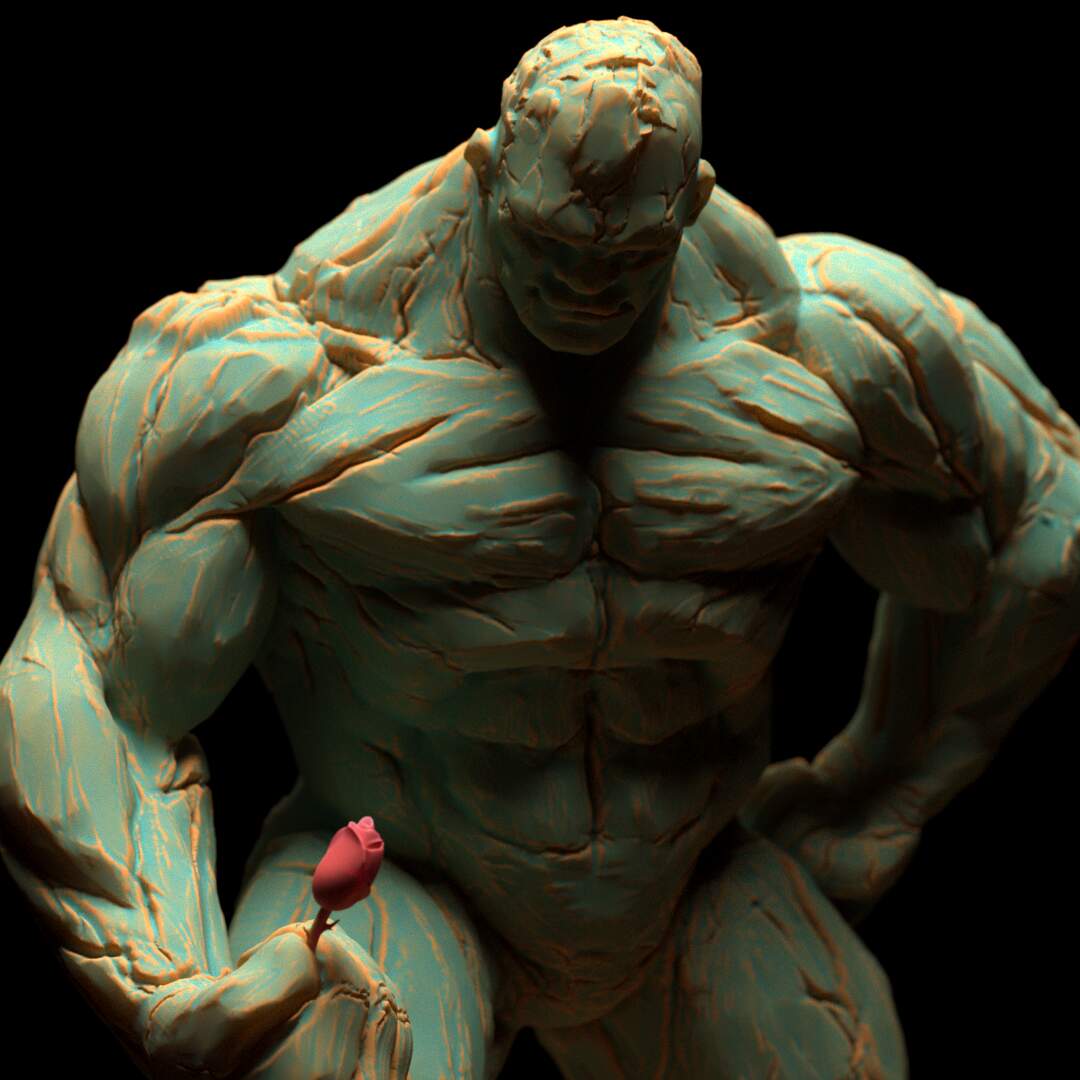 Here’s a sculpture based on a loose concept of a rocky alien, to be 3d printed as a 33mm miniature for a sci-fi RPG campaign.