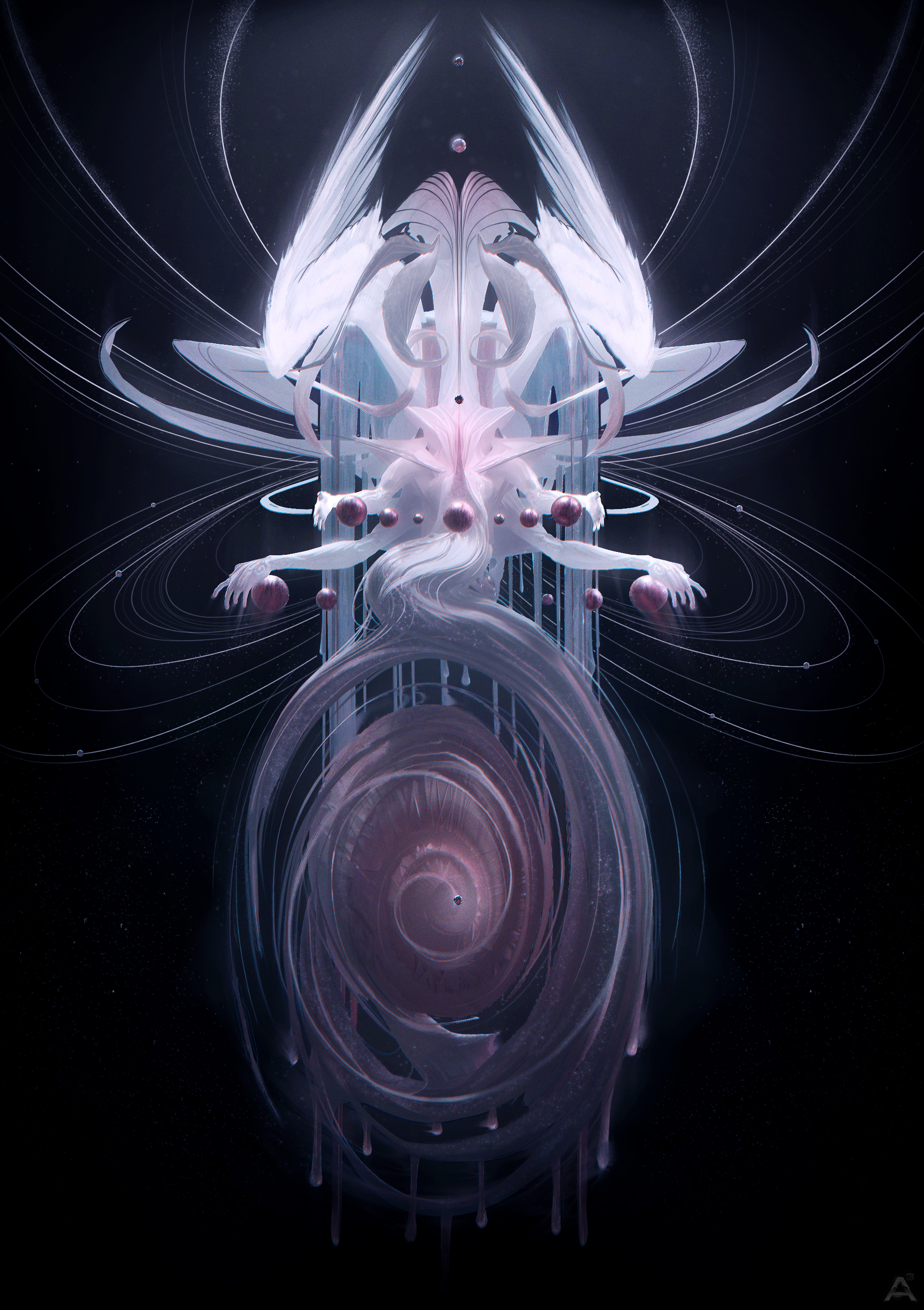 I was going through another bout of anxiety and existentialism so I took the sculpt I started on ZBrush live and flipped it into something that resonated with me in the moment. Interestingly enough, as I worked, thought more, and calmed down the colours and composition of this piece relaxed down as well.