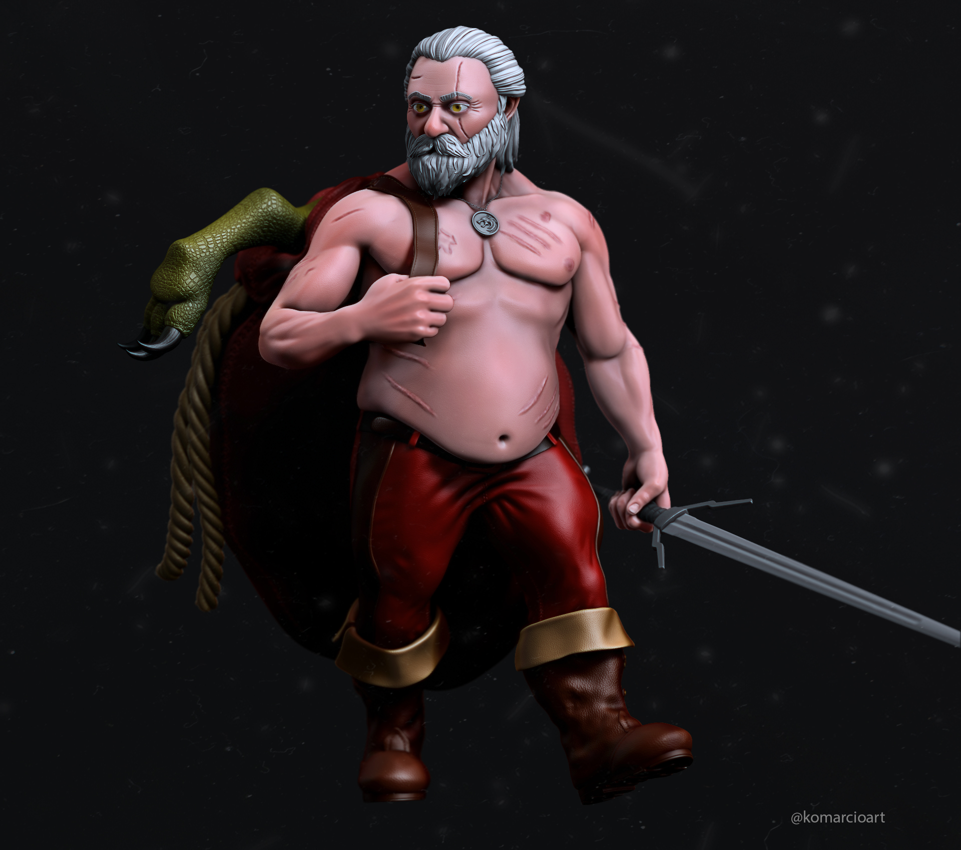 At Christmas time, I just had a crazy idea of making a Santa Claus version of Geralt of Rivia. In the end, it makes perfect sense that this is the final destination of our beloved witch.