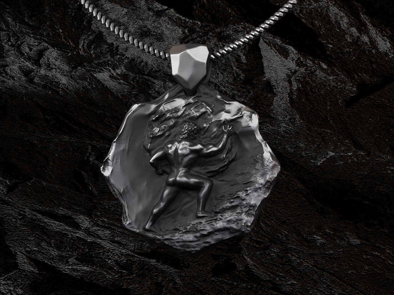 Sculptural pendant with the relief of the mythical Sisyphus.