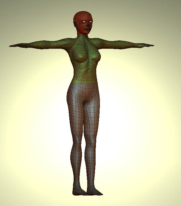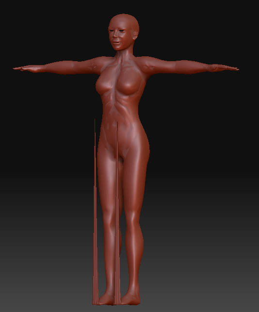 However when I open this tool, on my first subdivision it makes the points on the toes fly up to the chest, requiring masking all but those points and moving them back into place. However when I ctrl-click on the model in edit mode, ZBrush3 vaporizes to desktop, so I don’t know what’s going on there… They seem to have the correct polygroups when loaded into ZBrush2 however.