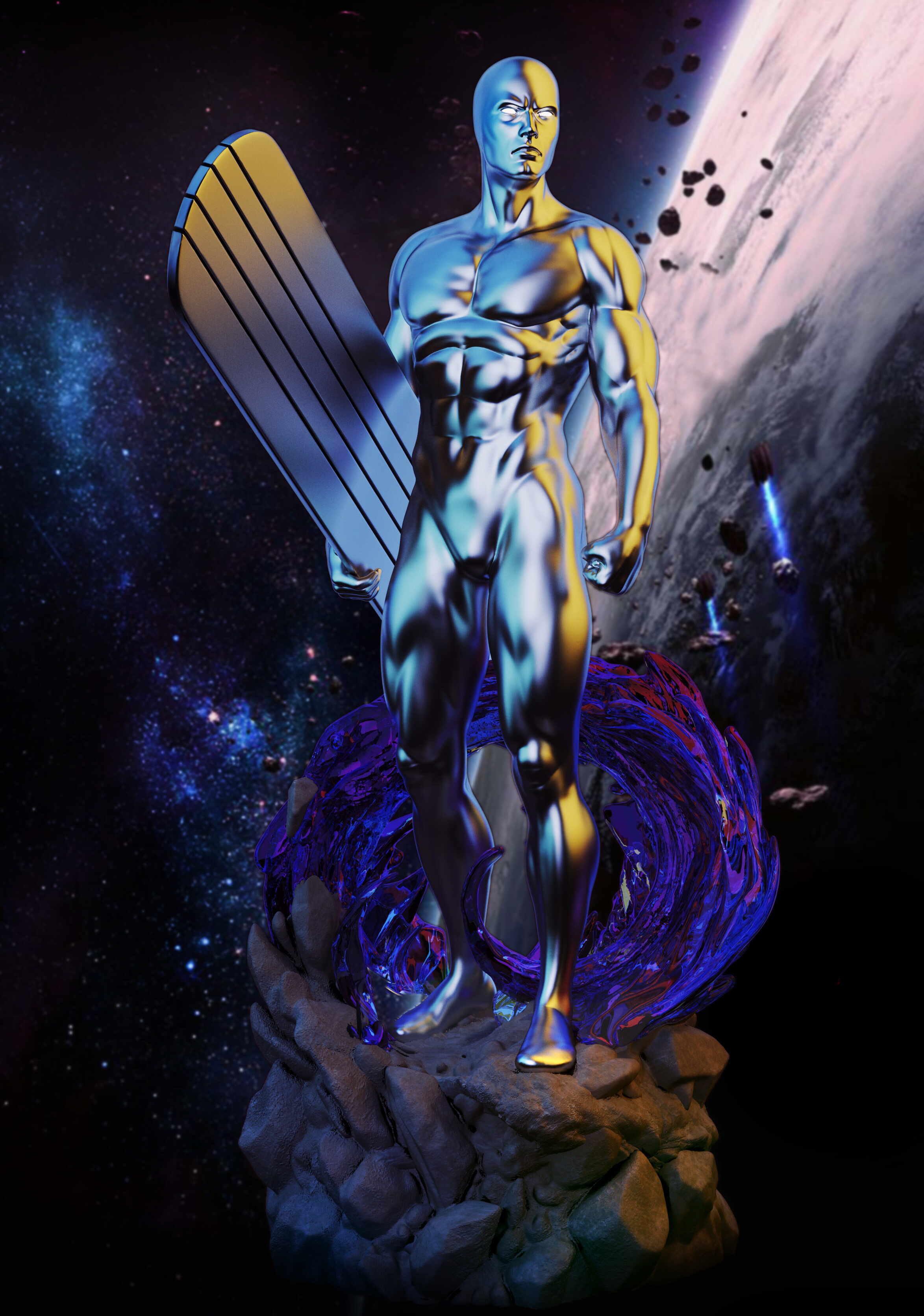 Hey guys, here’s my fan art of Silver Surfer, created as a collectible statue.