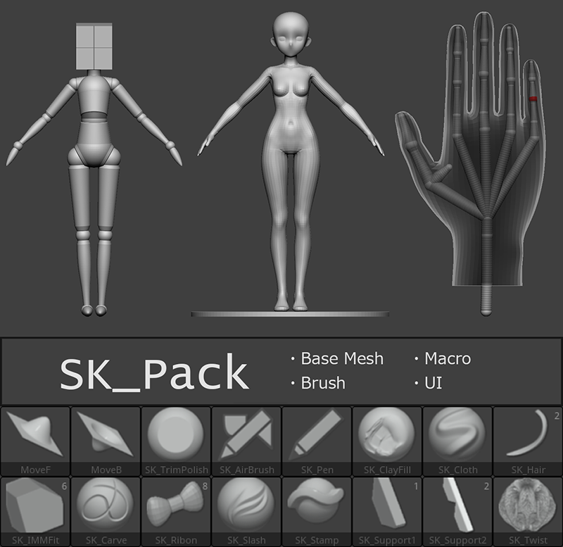 "SK Pack" custom brush, custom UI and base mesh